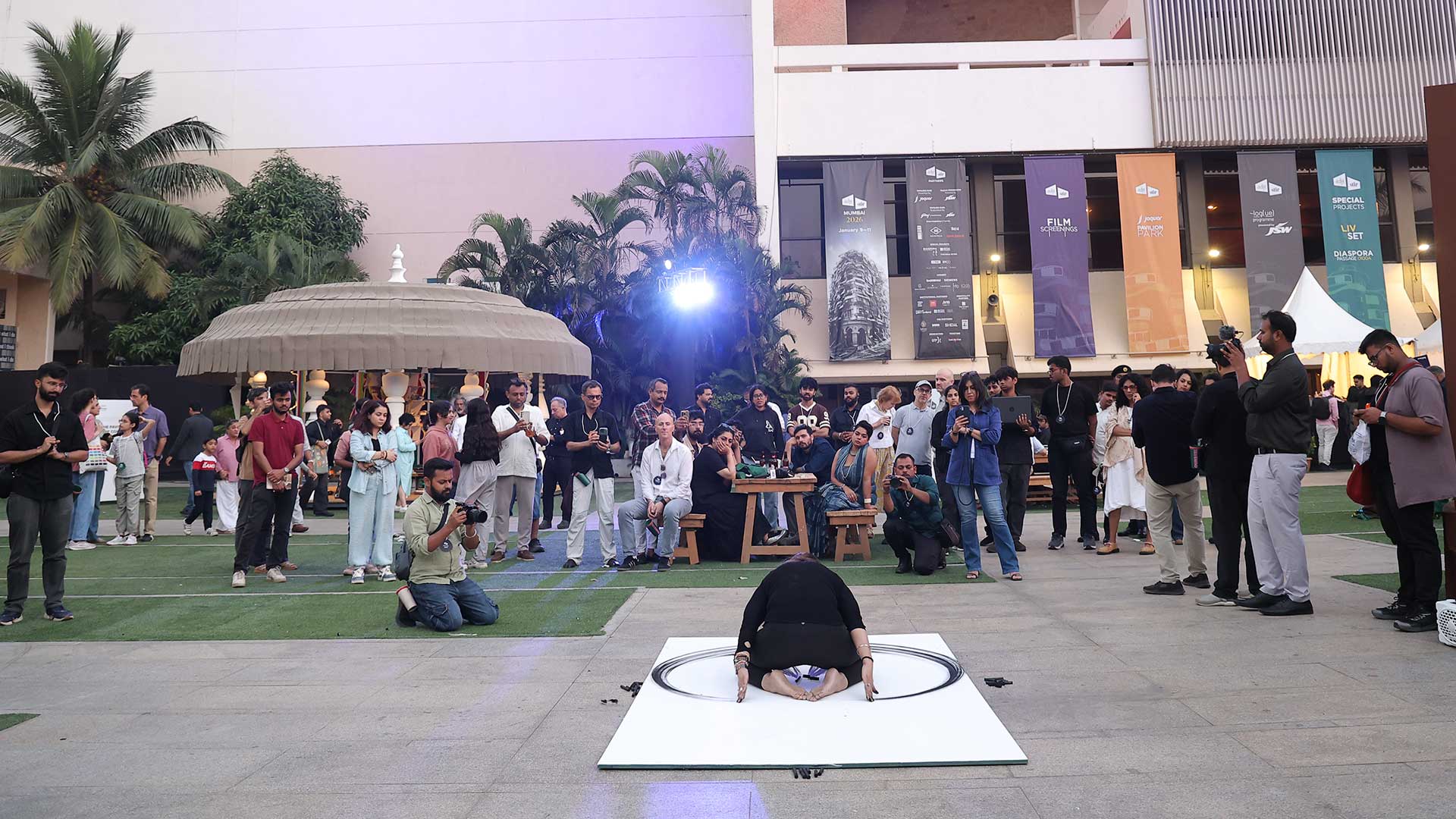 Saheba Singh’s live art performance is an immersive act of creation—where art unfolds in real time as ritual, not spectacle. Working with charcoal, movement, breath, and music, she responds intuitively to the energy of the space, allowing emotion to guide every mark. The performance is slow, sensorial, and deeply present—inviting the audience into a shared pause of stillness, memory, and expression. The performance adds depth and emotional texture to the gathering, creating a moment that is quietly powerful and deeply felt. This is where art becomes ritual—and creation becomes something to experience, not just observe.