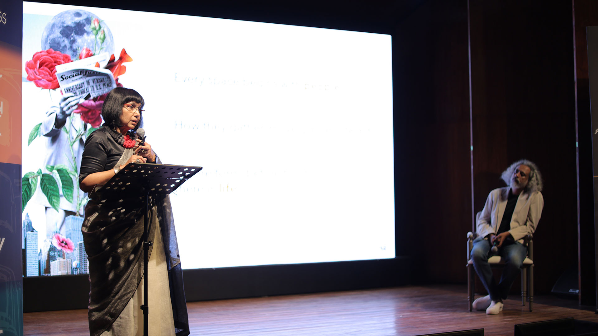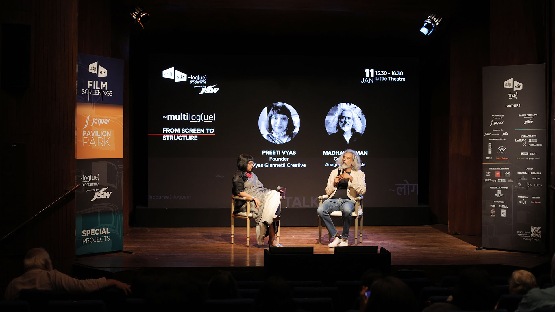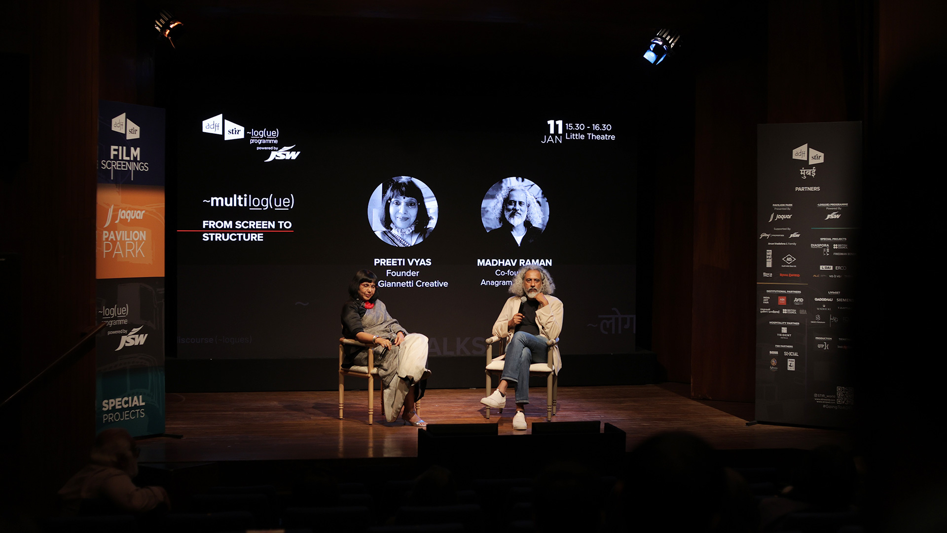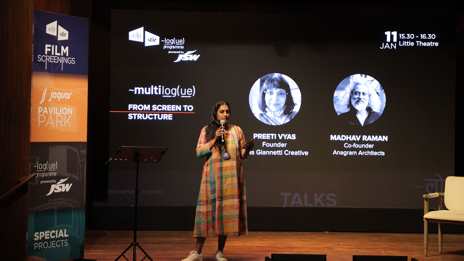 Cinema, graphic design, and architecture share a common logic. They operate as visual systems that organise how we understand the world. From Screen to Structure places Anuradha Parikh and Preeti Vyas Gianetti in conversation, with Madhav Raman acting as provocateur, to examine how images, spaces and structures actively shape cultural reality rather than simply represent it. Each speaker unpacks real-life examples, drawing on film, graphic systems, and architectural thinking to explore how visual decisions across scale produce meaning, behaviour and ideology.