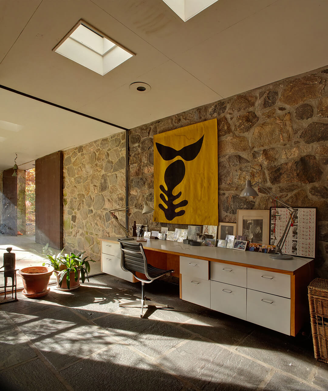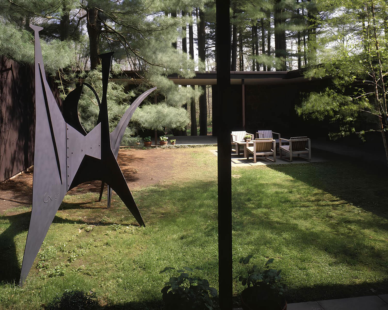 FN: You have to remember that none of these people were famous then. The term “Harvard Five,” my father’s architectural contemporaries in New Canaan, was coined many years later. At the time there was no sense of being a part of an isolated group. Yes, they knew each other and shared a similar spirit but they were just friends trading ideas. There was a sense of community and they often came for dinner and parties. Some would stay overnight. I remember Charles Eames drawing a heart on the blackboard in one of the bedrooms. It was his way of saying thank you. Two days later it was gone. [Laughs.] People would come to see the latest films projected on the mantel over the fireplace and so on. Their relationships were also informal. My father arranged for Calder and Noguchi to do some artwork for the IBM Building. Calder also made his mobile for the house and then my father bought another one. So, we had three major pieces by Calder; two were specifically made for the house. So, all of these people came often. I was just a kid and didn’t know who was who. The sense that they were giants of their era grew slowly.