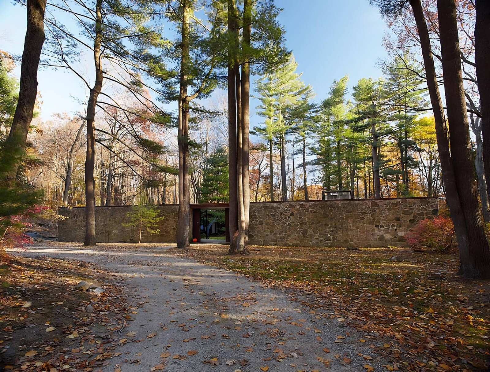 Two days later after a one-and-a-half-hour drive from New York City, I was there. At first, I hardly noticed the house. Driving on a lonely winding road through a heavily wooded area I was taken by surprise when my car’s GPS abruptly announced the end of the journey. Looking in every direction I failed to recognise anything that would suggest my arrival. After a quick turnaround, I finally noticed a straight section of a stone wall, similar to the ones built by farmers around here since the early 1800s. The wall’s central opening with two barn-like wooden doors widely open, reassured me I was at the right place. Fred was right behind the doors attending to some last-minute preparations. His friends, enthusiasts of mid-century modern houses were trickling in. It is worth mentioning here that more than 100 modern houses were built in New Canaan from the late 1940s to mid-1970s by the likes of Philip Johnson, Marcel Breuer, Landis Gores, John Johansen, Edward Durell Stone, and even one by Frank Lloyd Wright. It was Fred’s father who chose New Canaan to raise his family and convinced some of his architect friends to follow him.