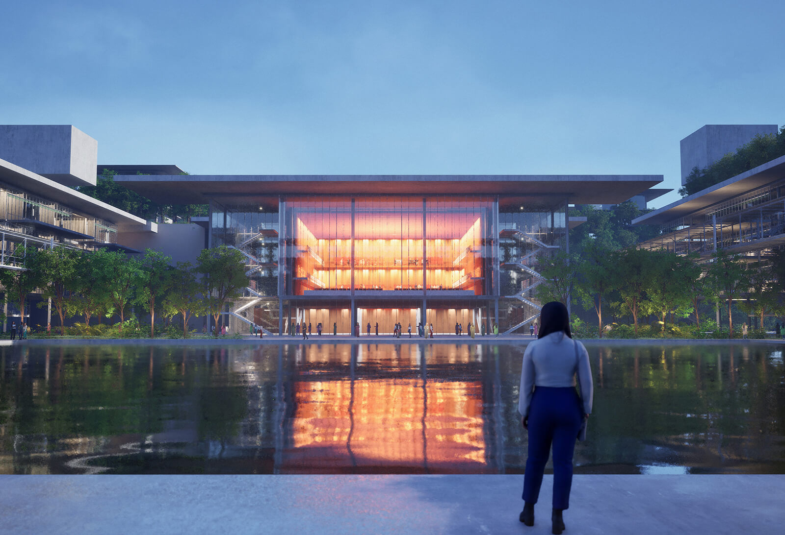 Conceived by Pentaspace Design Studio, this cuboidal volume of exposed concrete and glass pegs movement as integral to the learning experience.