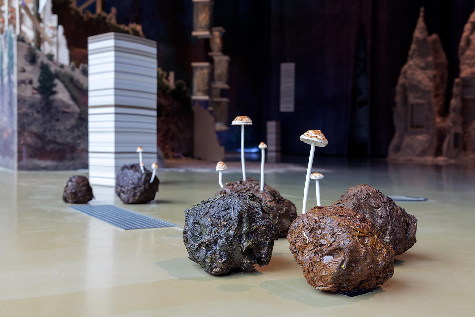 The curators build on the notion that these enigmatic beings challenge our base desire to catalogue, curate and clarify the world, moving away from the championing of fungi in contemporary architecture and design as a trendy, inert material—one that is biodegradable, all-natural; one that is meant to unsettle ‘convention’—but only on the surface. Instead, the very uncontrollable nature of mycelial networks calls for messier associations with a global order that is already inexorably complex. By presenting fungi as self-sustaining organisms that thrive in unique, multi-species environments, and especially in the detritus of capitalism, the exhibition opens up new possibilities for design to engage with. In conversation with STIR, Tsing notes, “We need [new] kinds of language to move away from the kind of exceptionalism that makes us believe that humans can live by themselves, that humans can jump into a spaceship and go to another planet and be perfectly fine and leave the Earth a mess.” It’s this idea of exceptionalism, after all, that has deluded humanity into setting faith in the idea of unfettered, machinic progress and the surety of scalable processes to ensure man’s forward march.