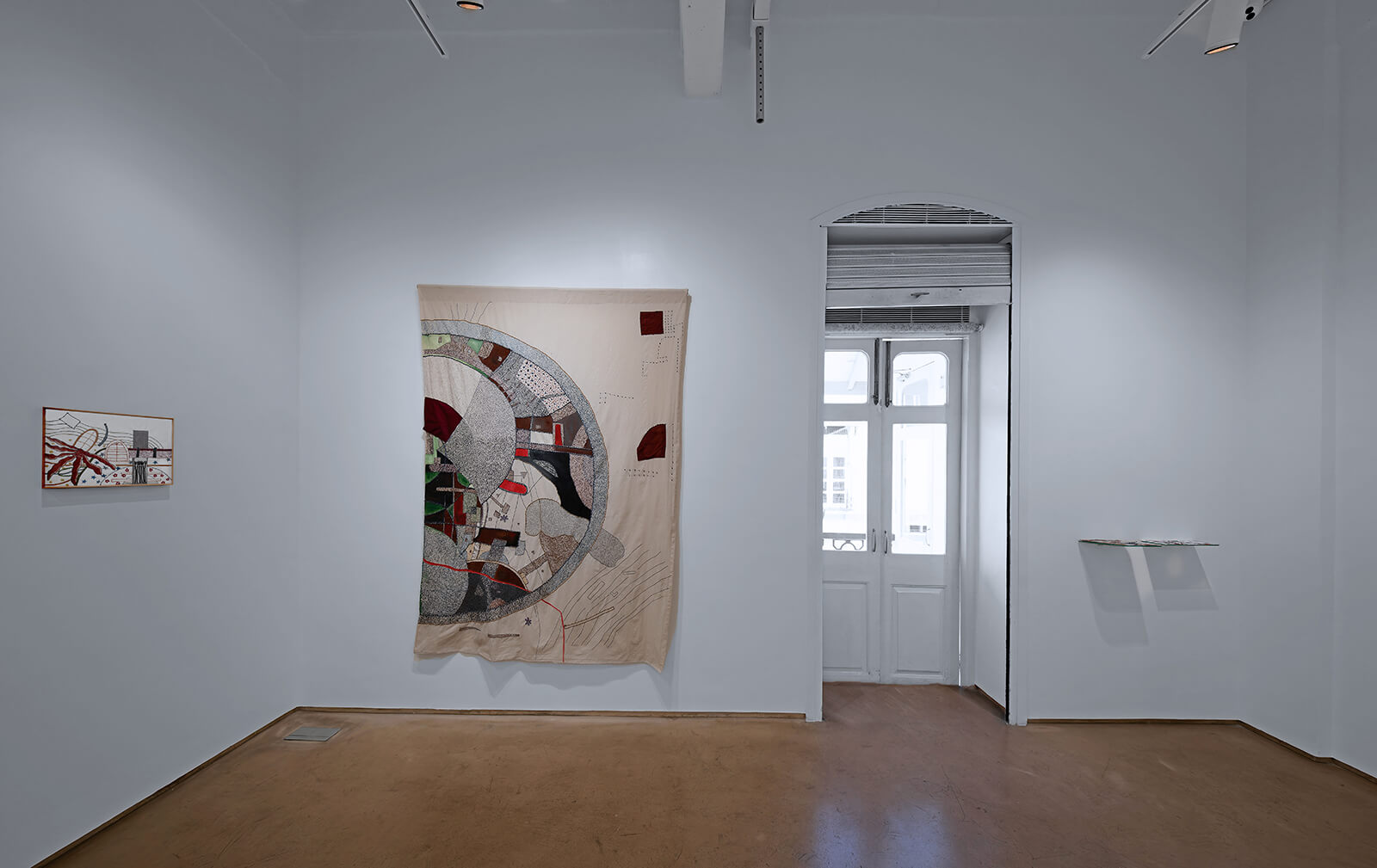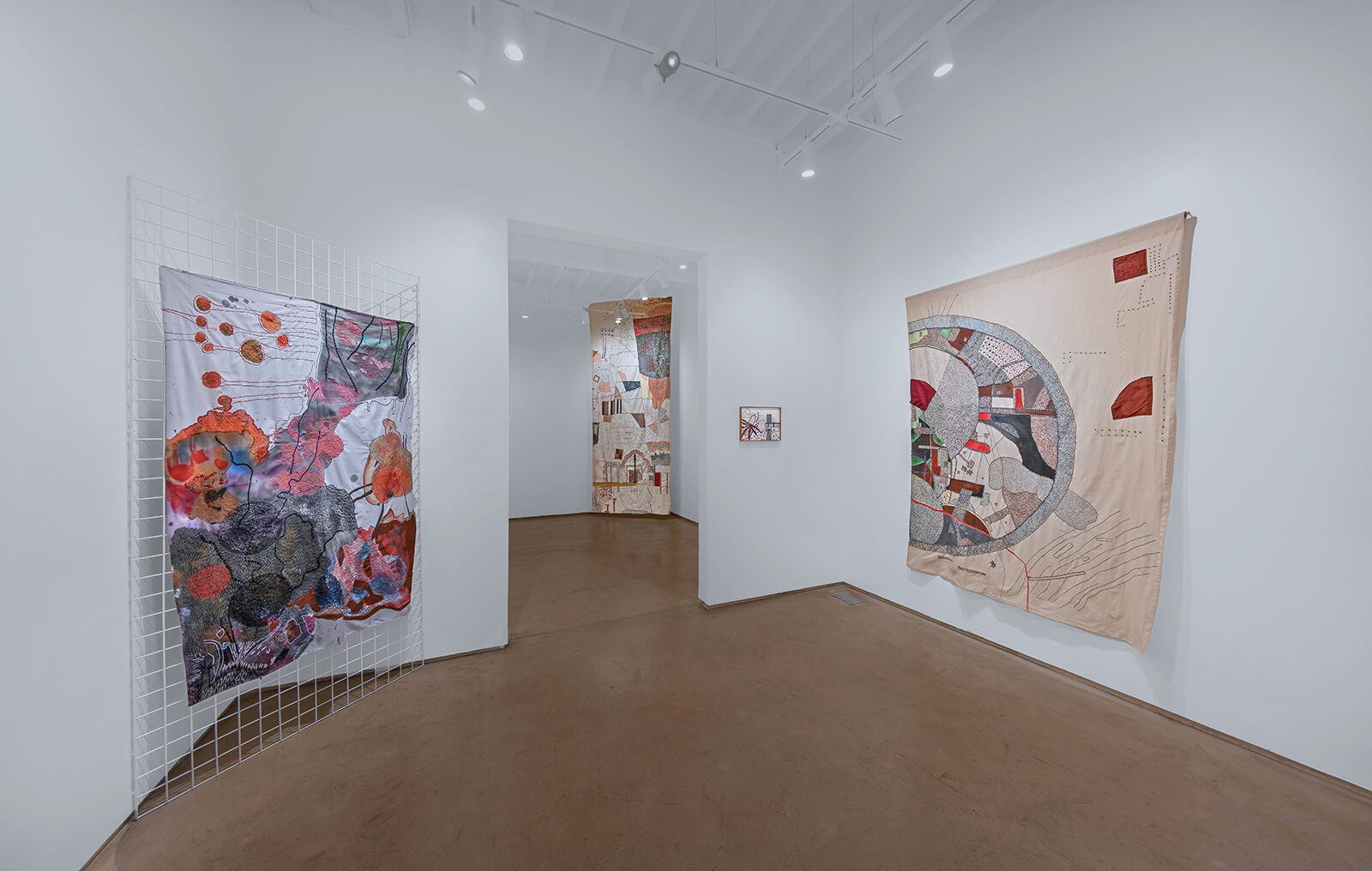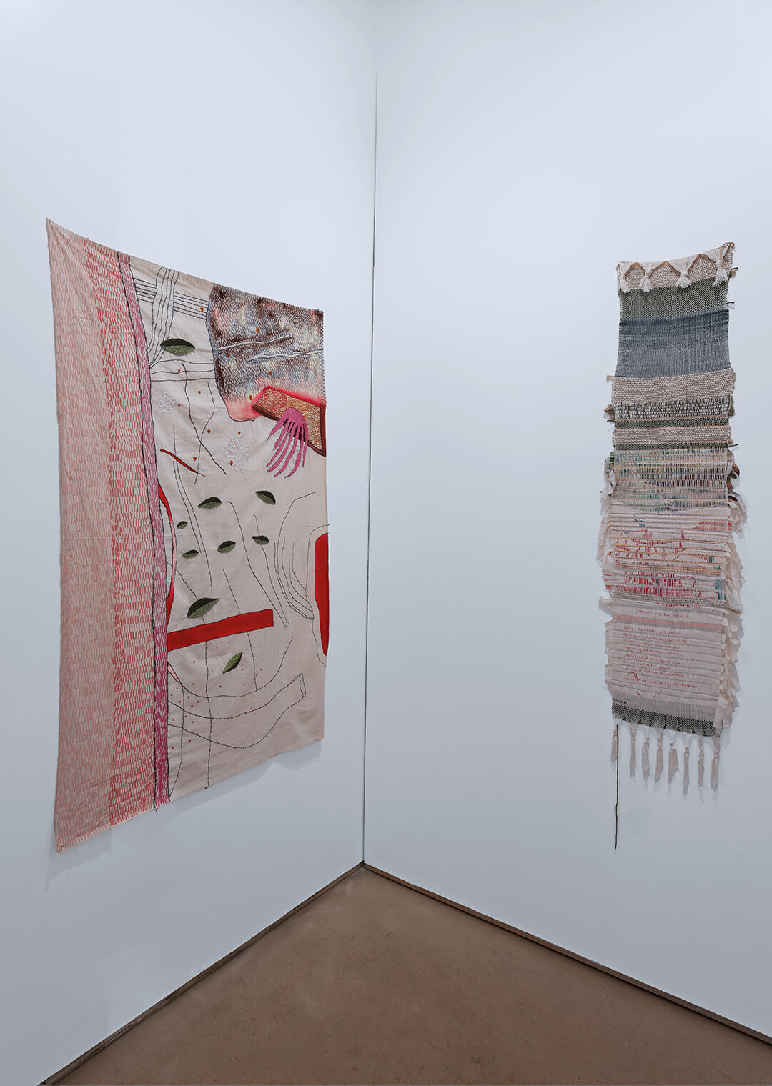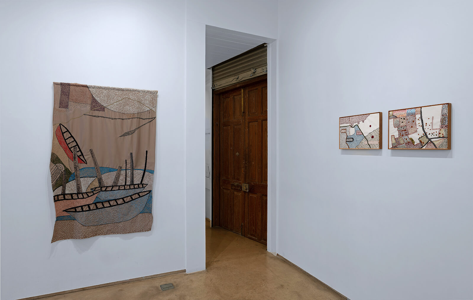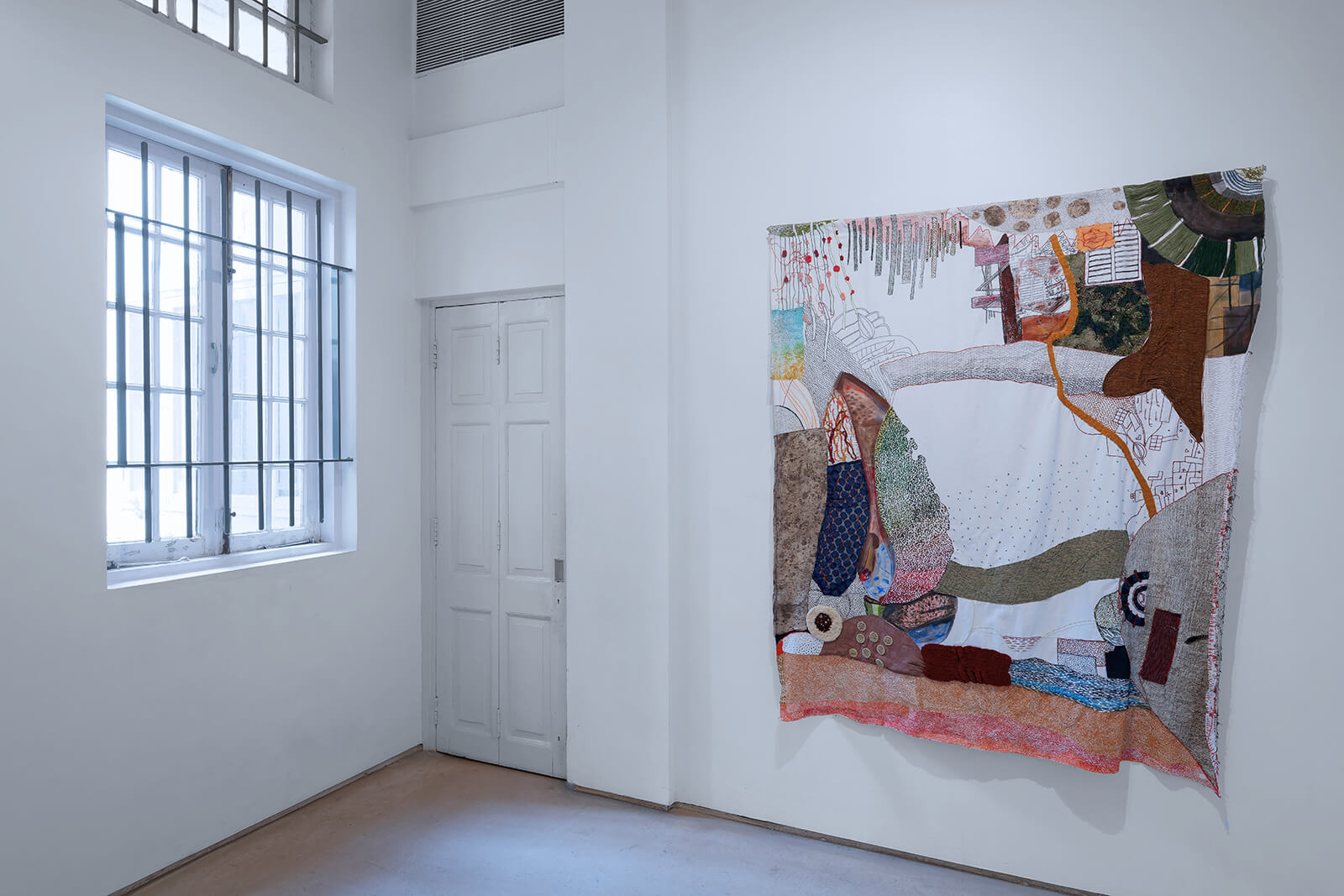 Vinoja’s relationship with textiles led her to apply for a scholarship to study at Beaconhouse National University in Lahore, Pakistan. During a Master's in Art and Design Studies, she continued to experiment with the possibilities of the textile medium, alongside joining her alma mater Eastern University as a teacher, where she also met the artist Pushpakanthan Pakkiyarajah, a colleague who would become a friend and mentor. “His work derives from his experience of the war as a child, and so does mine,” she reflected. “All the while, I was wondering how to improve my practice and was planning to develop a curriculum on textile-based practices as the university mostly focuses on mediums like painting, sculpture or digital art – so I wanted my Master’s to focus on textiles. There is a Visual Arts and Design department in Beaconhouse National University in Pakistan, so I decided I’d study there.” Vinoja also ensured that she exhibited locally so that her students could see an alternate practice beyond their curriculum and think about contemporaneity.