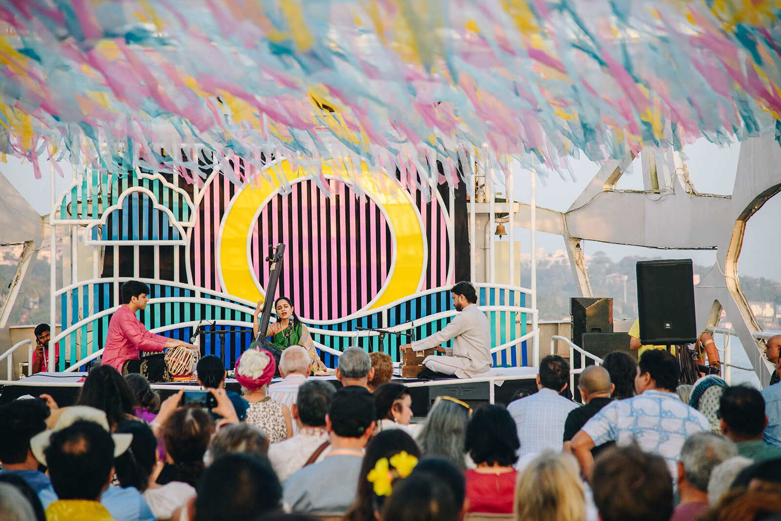 As temperatures dropped, the riverside Art Park’s music stage welcomed those ready to dance, drink and eat while indie musicians and DJs filled the air with pop, jazz, rock and techno. The festival takes advantage of Panjim’s natural vistas with plenty of outdoor programming and events like the annual River Raag, which takes visitors on a sunset cruise on the Mandovi River while Indian classical musicians, riffing on the storied form, serenade them. Terra-grove, a public art installation, made its mark on Miramar beach, using large, curving ribbons of terracotta Guna tiles to create a space for people to take respite from the hot Goan sun, unrelenting even on a December day. The installation was curated by duo Thukral and Tagra as part of their Multiplay project, continuing from 2024.