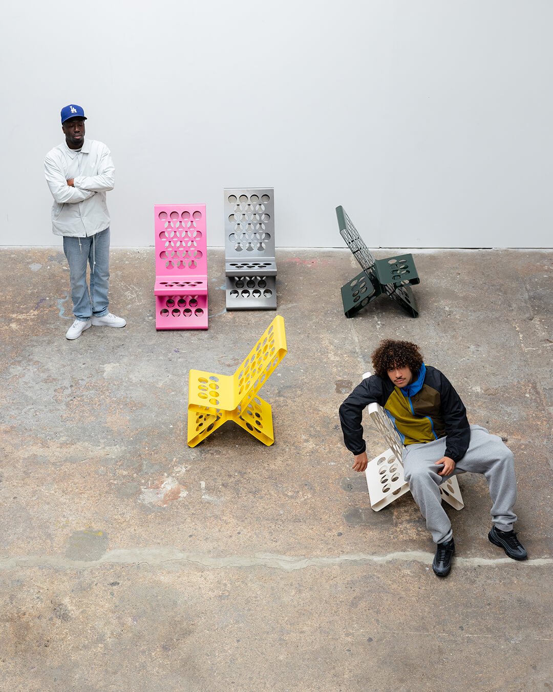 From the Curry Mango armchair which fused a Quechua camping chair with Marcel Breuer’s Wassily Chair—a 1925 Bauhaus icon of tubular steel modernism—to the Olympic Bench, a wide-steel and concrete seat conceived as an alternative to the hostile benches that fragment public space; along with the DKR Chair, a perforated steel reinterpretation of the African palabre seat—a low communal chair traditionally used for village discussions—that later entered the Mobilier National collections, the collective has built a portfolio of works that are both inventive and socially attuned. Their projects move fluidly between geographies, from Dakar, Al Ula and Mexico City to Paris, as well as across disciplines, spanning transforming a 19th-century console into a DJ’s workstation with 1880 BPM—its title fusing the object’s 1880s origin with the tempo of contemporary music—and creating Playground in Senegal, a large-scale installation that used the visual language of basketball courts to explore sport as a conduit for community and culture.