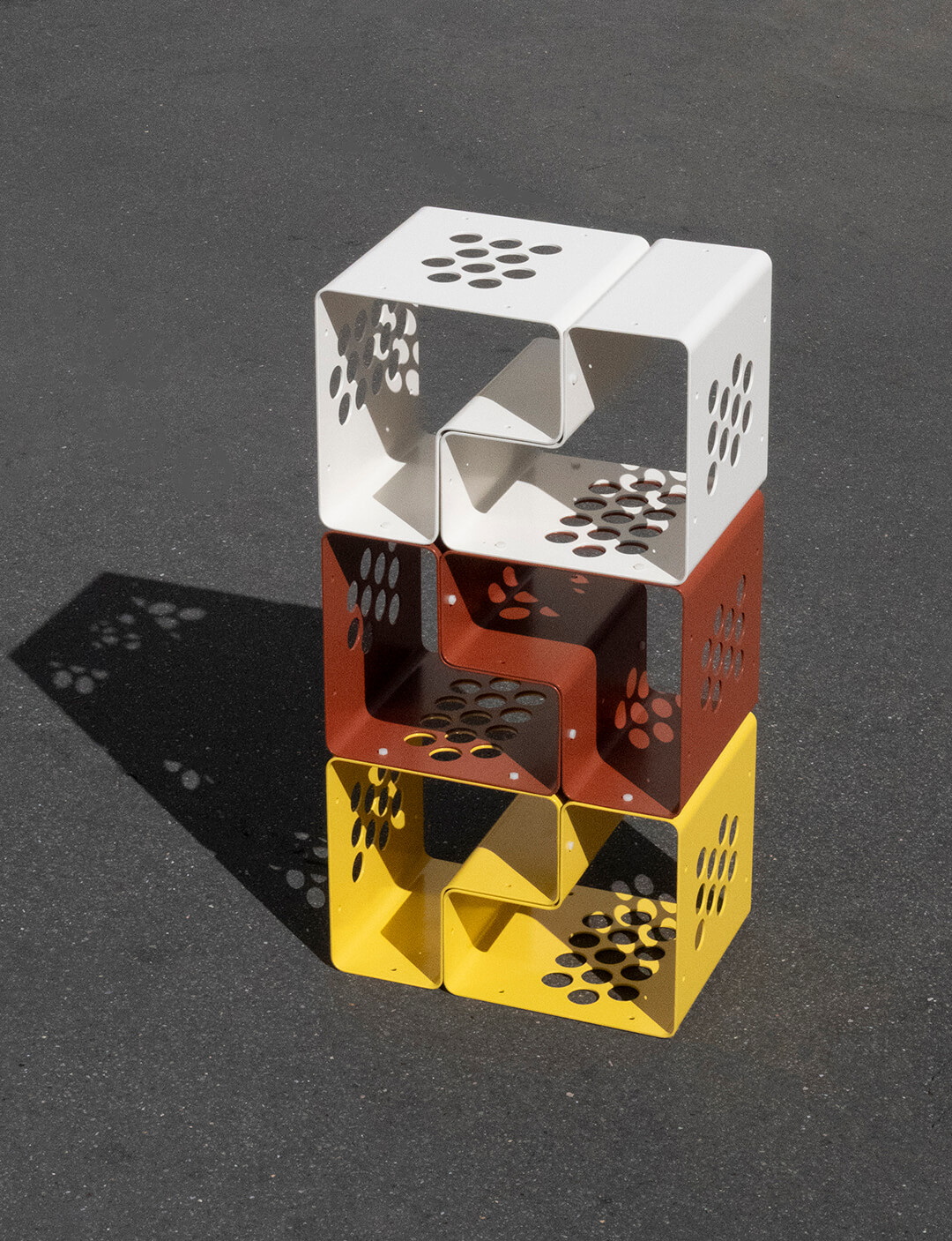 This collection drew from the story of the Olympic bench and the DKR chair, which were reimagined as a stool that was adaptable as a coffee table or a sofa extension and as a modular storage system inspired by Tetris, capable of endless configurations. Our aim was simple. It was to propose furniture designs at the price of a pair of sneakers, pieces that could evolve and adapt to the shifting needs of our audience.