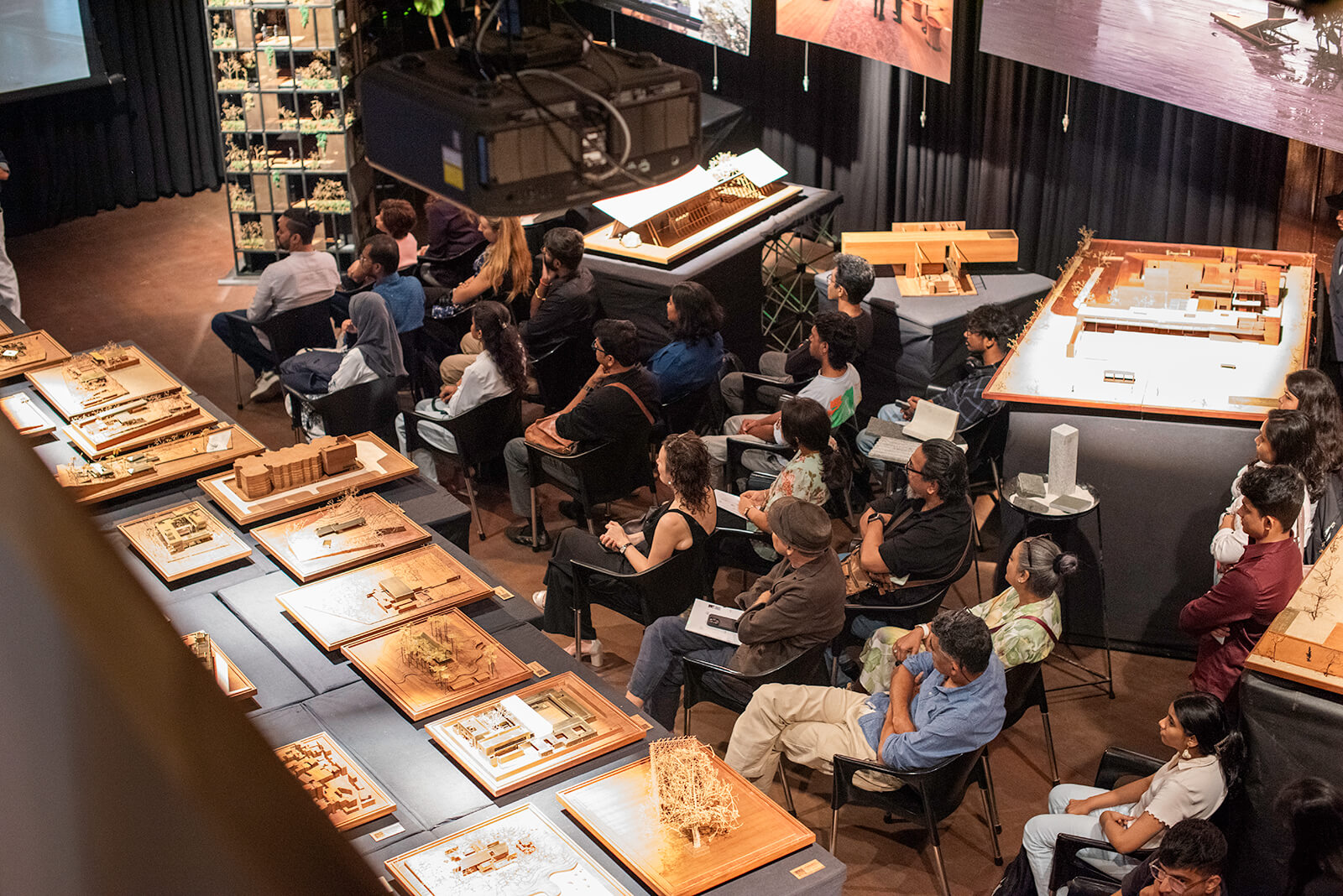 “Architecture, more than any art, is one of silence,” the founders reflect on this decision. “Buildings cannot be explained, only experienced. Every interpretation is valid. Words get in the way of pure reaction.” The audience’s response, according to the studio, was telling. Students leaned close to the miniature models, professionals studied scaled-up sectional details and others stood before slow fades of projected films. The insistence and emphasis on physical artefacts, particularly these models, reasserts the discipline’s reliance on hand, scale, weight and spatial intuition. “Some whispered, ‘Why make so many models when you can render?’” Merchant and Panjabi recall. “But it was gratifying to see visitors immerse themselves into the truths of the projects.”