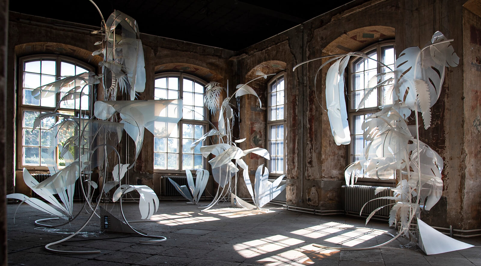We use big datasets from institutions like UNESCO or the WHO, and sometimes from companies’ CSR, like LVMH or Polestar. I think everything comes from that starting point. If we use datasets showing how quickly the Amazon is disappearing, like in the artwork Wither, it feels natural to use materials that can disappear themselves.