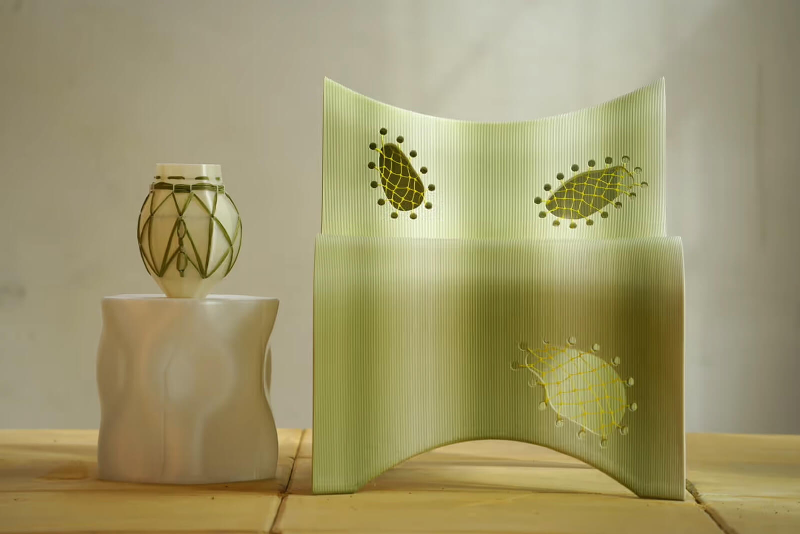 Another standout was Home from Home, an exhibition by Noura Residency. Their moody mise-en-scène of half-finished, cluttered and intimate domesticity stood in deliberate contrast to sterile fair booths. Whether some objects got slightly lost in the mess (especially for buyers used to commercial presentations) seemed beside the point. Similarly, Copenhagen-based studio 91—92, founded by Zeyu Rong and Weibo Sun, presented large-scale 3D-printed wall pieces made entirely from recycled plastic. Titled Agora and Roma, the works hovered between nodding to futuristic artefacts and archaeological sites, caught mid-unearthing.