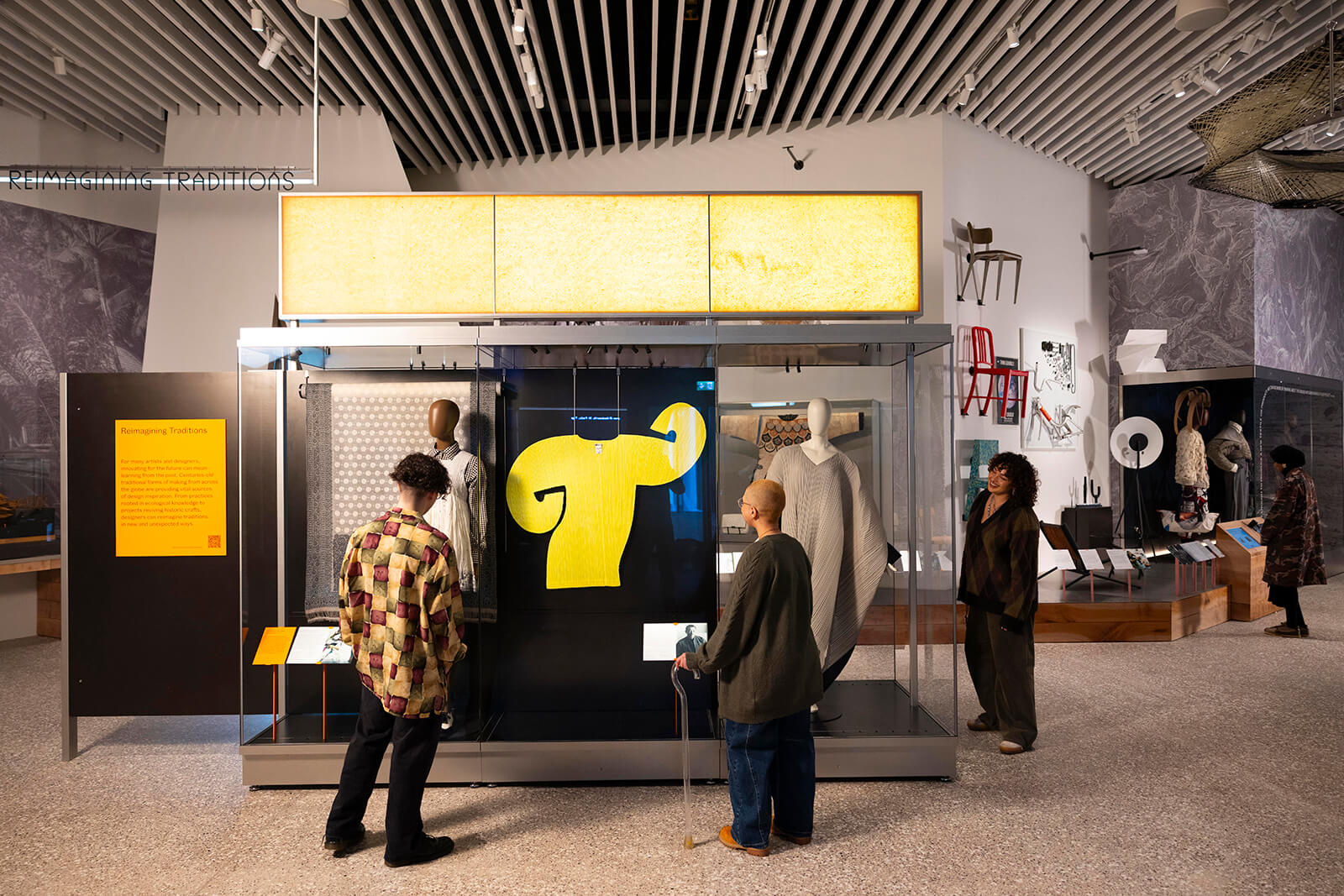 The breadth of curators, creatives, designers and makers, many from East London, enliven the museum galleries with their work and contributions. The free to visit, permanent Why We Make galleries, designed by JA Projects in collaboration with A Practice for Everyday Life, Larry Achiampong and the V&A East Youth Collective present a feast for the eyes with an array of items from the V&A collections. These are interestingly brought together in a refreshing approach blending items across times, countries and cultures with a fit-out to match.