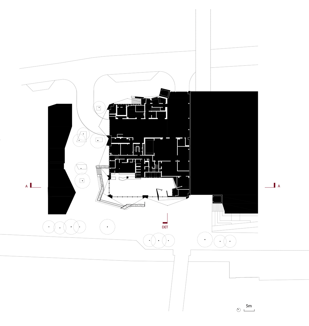 O’Donnell talks of the contingent space, saying, “I think the materials choice is part of making it feel like it flows from the external world into the internal world. Expressive detailing is suppressed into the continuity of the experience.”