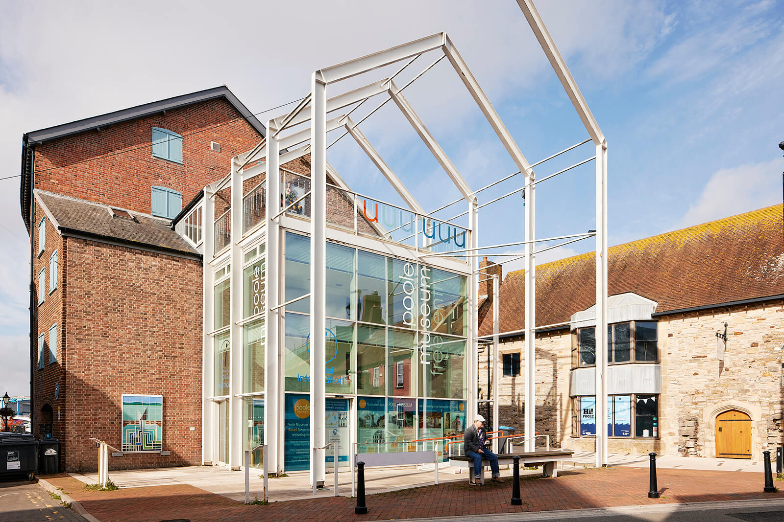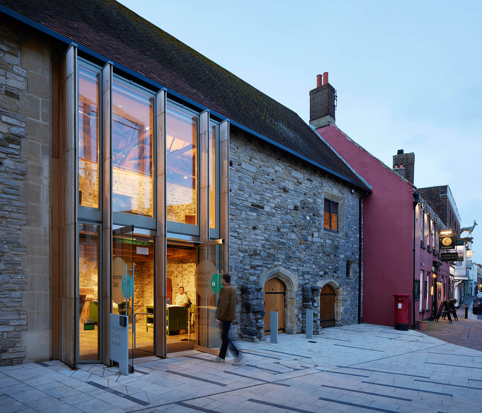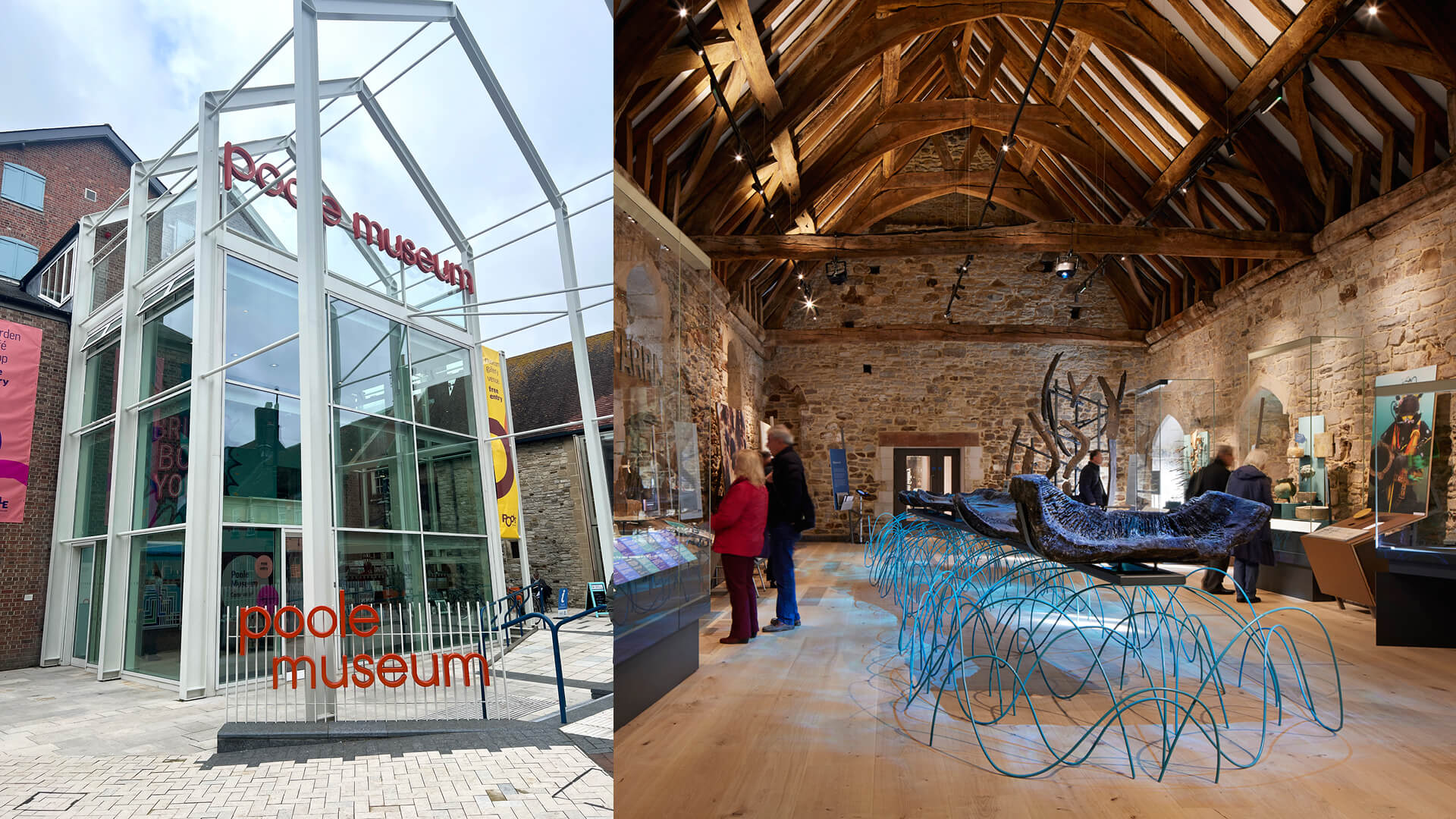 The most striking aspect of the newly opened Poole Museum in Dorset, UK—on first approach—is the way it melds thresholds. Between the tastefully redone museum building and the adjacent Grade I merchant’s house, Scaplen’s Court, a difference in levels from the thoroughfare is hardly discerning. A brisk walk from the train station, the museum’s location opens it up to two equally interesting approaches—through the high street and along the quay side. Both seem to be rather ordained culminations, with the museum and court reflecting as well as drawing from the city’s urban and maritime history. Through its collections, yes, but also in its architecture. The melding, then, isn’t entirely limited to its fluid yet defined thresholds. It also extends to what are easily perceivable as distinctive architecture languages.