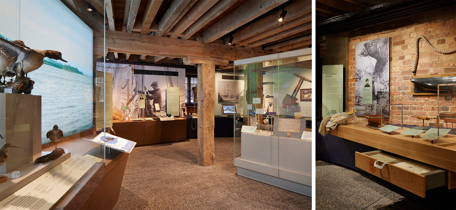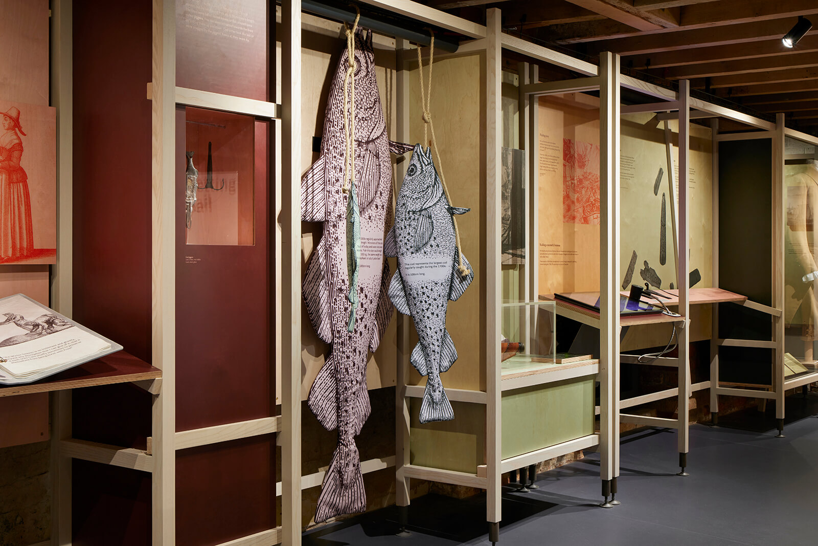 Through a series of permanent exhibits including salvaged ship parts from both Dutch and English merchant and navy vessels, interactive screens recounting the town’s unrelenting relationship with the seas and ceramics and paintings that are part of the town’s history and vocabulary as a trading port, among others, ZMMA’s staging of the exhibits—co-curated with the local community and a host of other experts, as the architects claim—foregrounds the museum’s architecture in interesting, interactive ways. This adaptive reuse and restoration couldn’t stray further away from the ‘white cube’ notion often associated with galleries—another way the museum, by design, hopes to include the local community fully involved and interested. With Harbour Life occupying this light-filled gallery, Shipwreck!, set in the Grade I listed Wool Hall—the oldest structure of the lot—stages a rare, preserved Iron Age log boat as the star of the show, along with archival video records of the naval excavation and discovery odysseys. The restored timber roof profile here is especially dramatic, pronounced by the lighting, both constantly in dialogue with the exhibits. Above the three-storey voided galleries, the museum is topped by unrestricted floors housing other permanent exhibits, along with spaces for reading, learning and other creative activities, and a Government Indemnity Standard temporary exhibition gallery enabling flexible programming to attract national touring exhibitions.