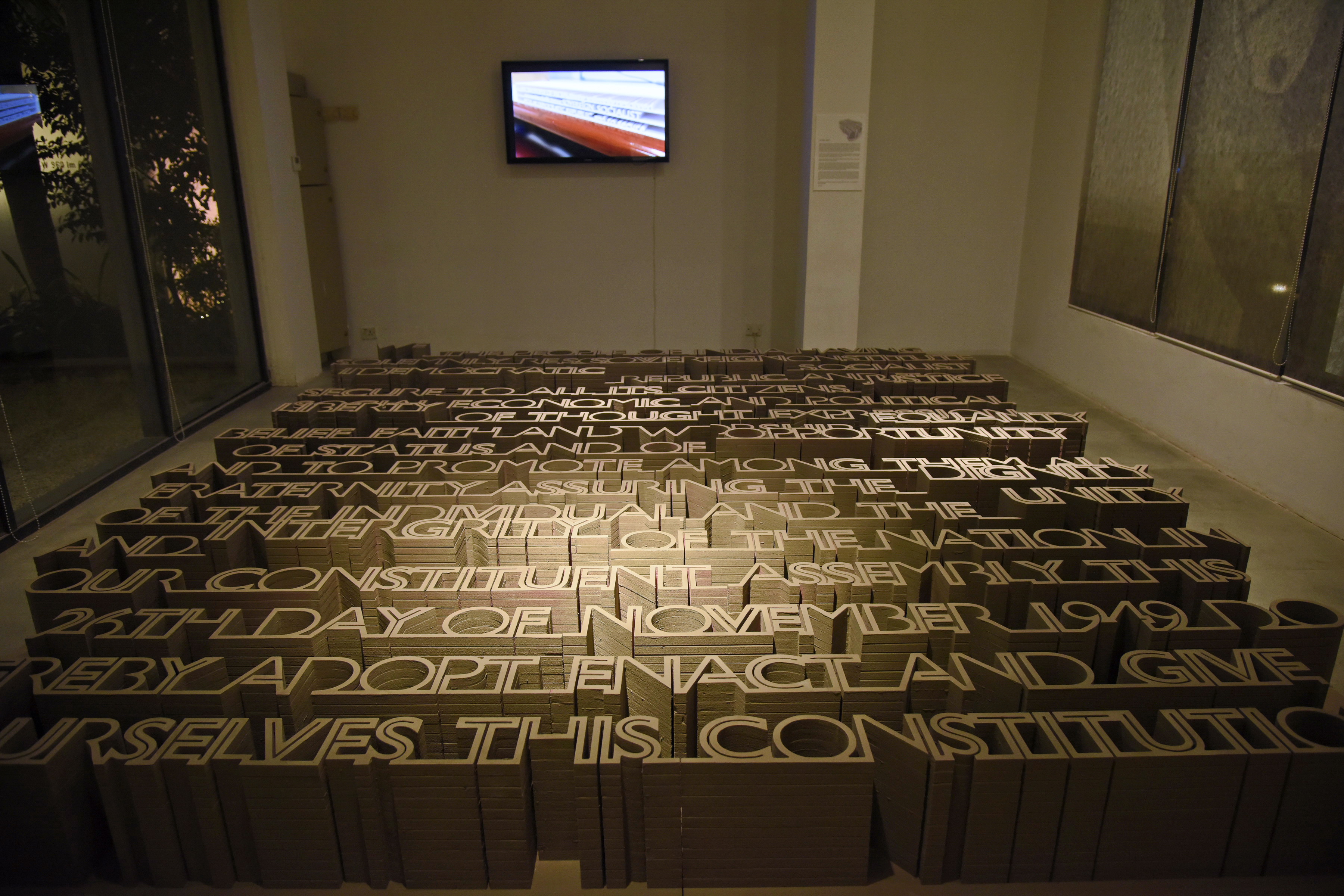 Being present-day practioners of design, there is a certain ease of access to the many tools of modern living – hence a handwritten note is unequivocally replaced by a ‘gadget’. In keeping with modern day methodology of construction, we intended to use a 3D printer to simply pour out and trace over a computer-generated template in concrete. Each time the Preamble is written, it is allowed to dry, before the entire process is repeated over it again and again, to gain the desired height – sort of like a child being made to practice pattern writing.