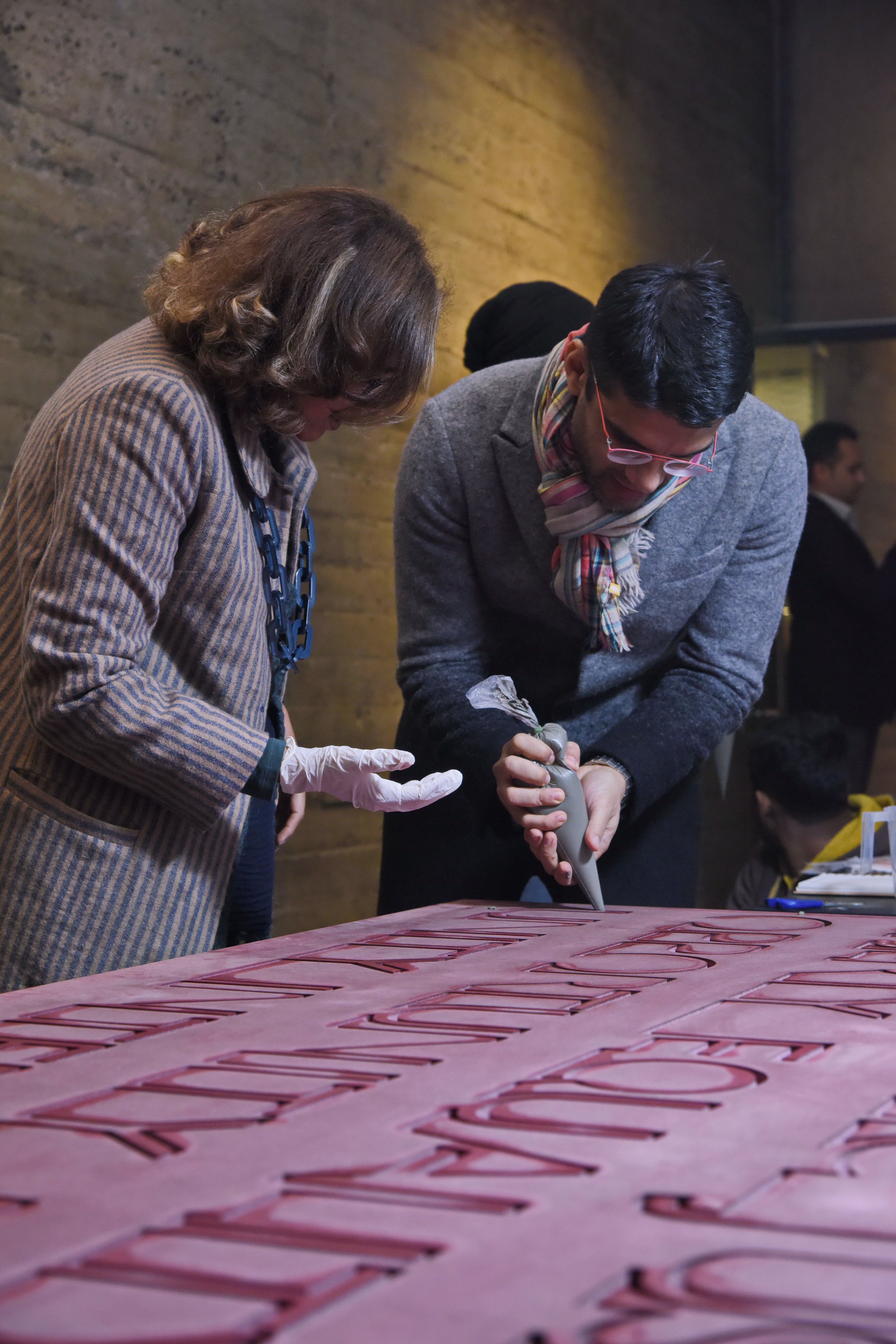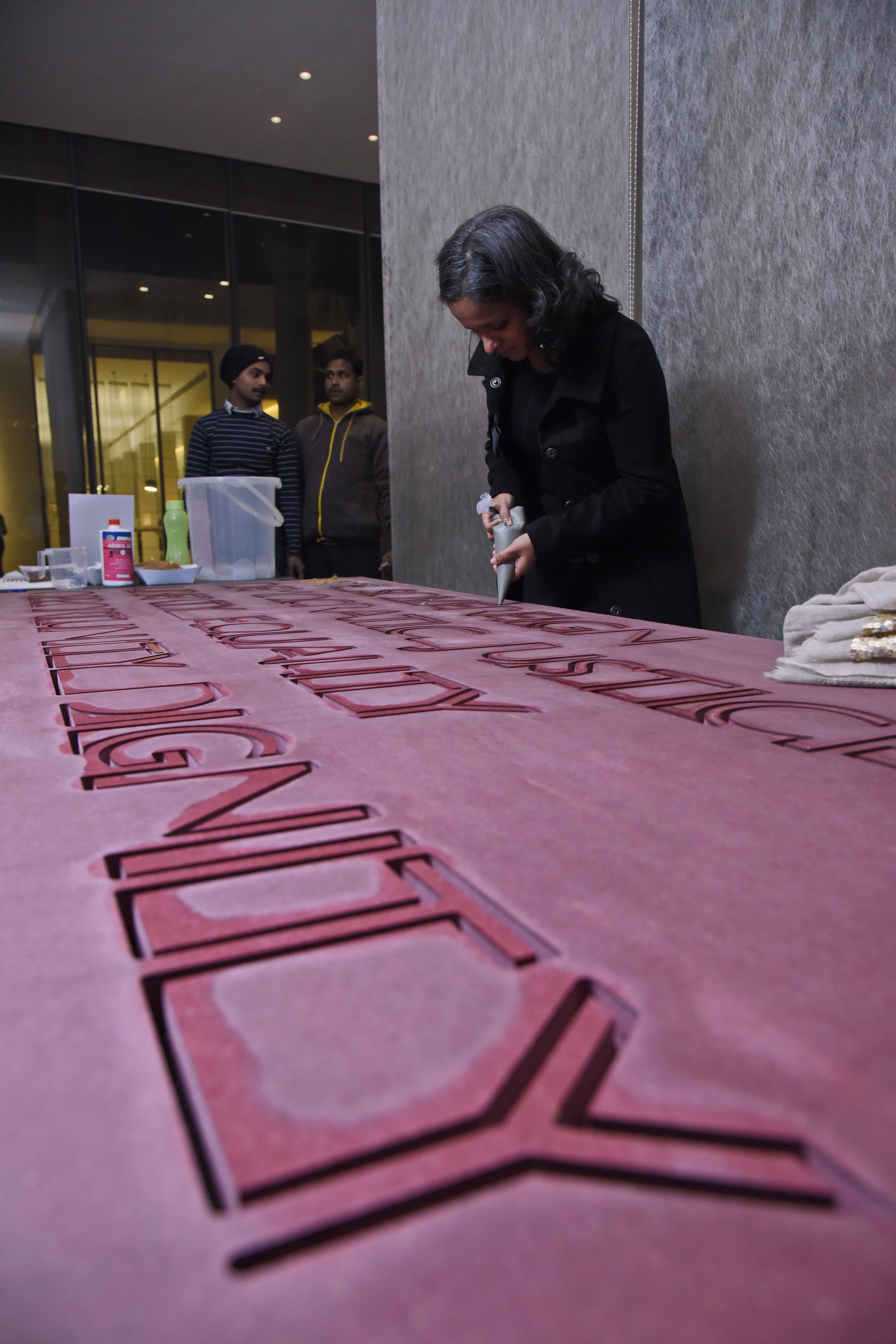 In order to make the experience shared and interactive, our intent is to have the machine-made platform on display and over the course of the exhibition days have the visitors to the gallery write out the same Preamble over a template, by using fast setting concrete filled cones. Each visitor will write to his or her capacity – a word, a sentence or even an entire paragraph. The amount of concrete that gets pushed out of the cone will vary owing to various strength capacities of the individual. The idea is that this would lead to an organic development of the table.