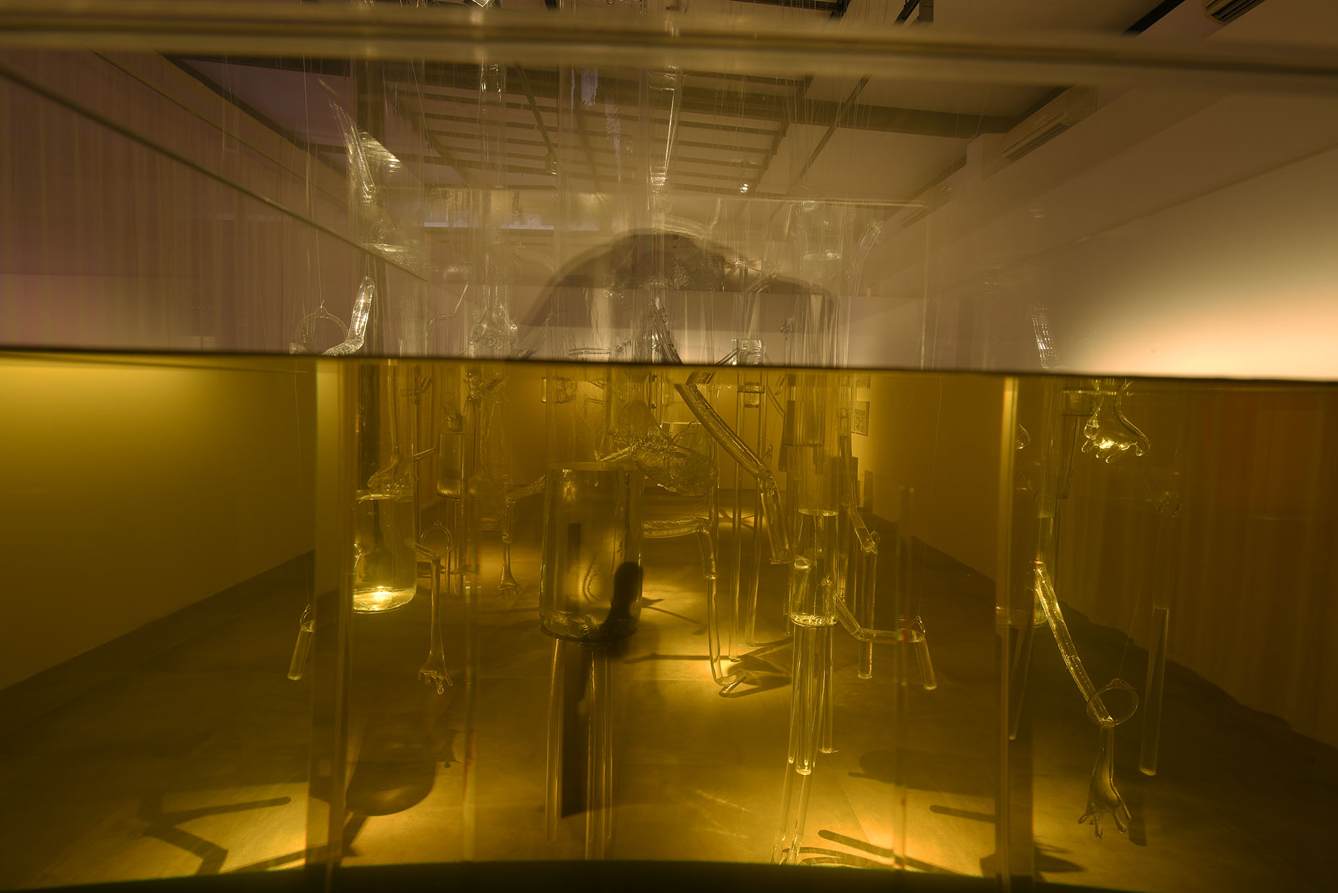 The installation is designed to ignite the senses and is a pause; to think of, ‘being water’- transparent and pure, when we are, as they say, made of water.