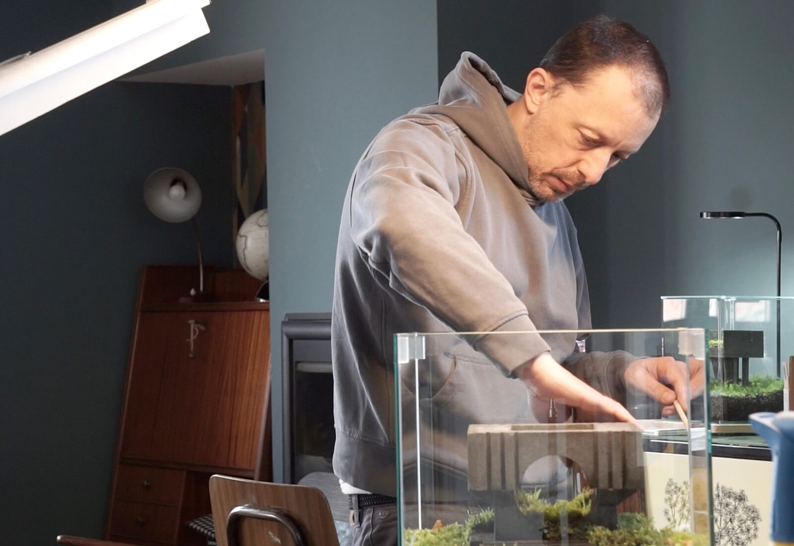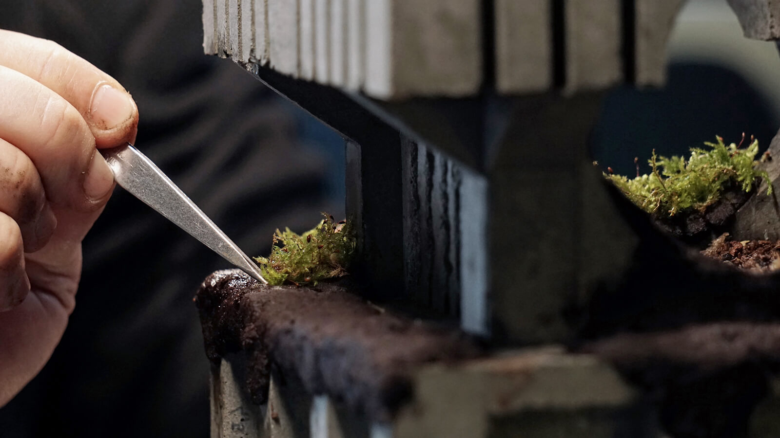 Fava’s idea of these fragile ecosystems grew from his protracted observations of neglected post-war buildings in Italy, in which cracks and dampness offered footholds to wind-borne seeds and creeping roots. The sight was never static; every time he went back, he noticed subtle changes. “I kept thinking how incredible it would be to witness that process up close, to really see how plants take over,” he tells STIR. Around the same time, he was immersed in the world of terrariums, learning traditional Japanese methods for cultivating moss in controlled environments. Combining these interests to him felt like a natural progression.