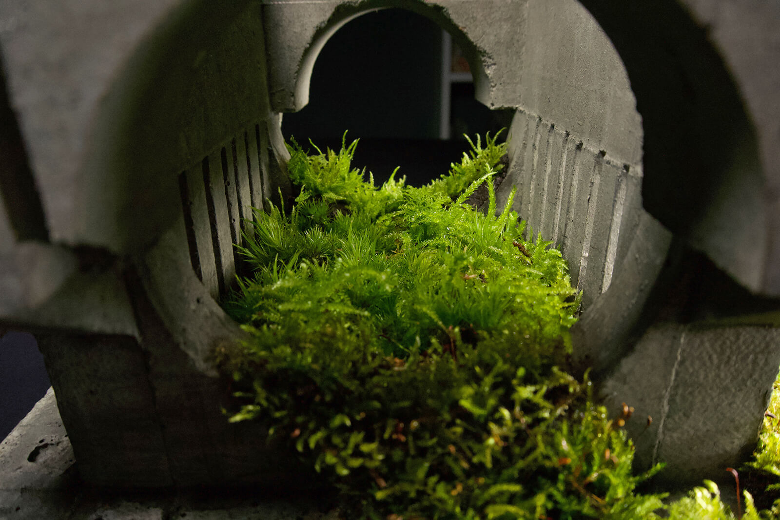 Fava approaches each new piece as a trial in controlled evolution, altering dimensions, concrete mixes and planting strategies to see how different combinations behave. The results are never replicated. Each terrarium becomes its record of interaction, with patterns of growth and wear that could not be predicted at the outset. It is this unpredictability grounded in observation rather than theory that keeps the work in motion.