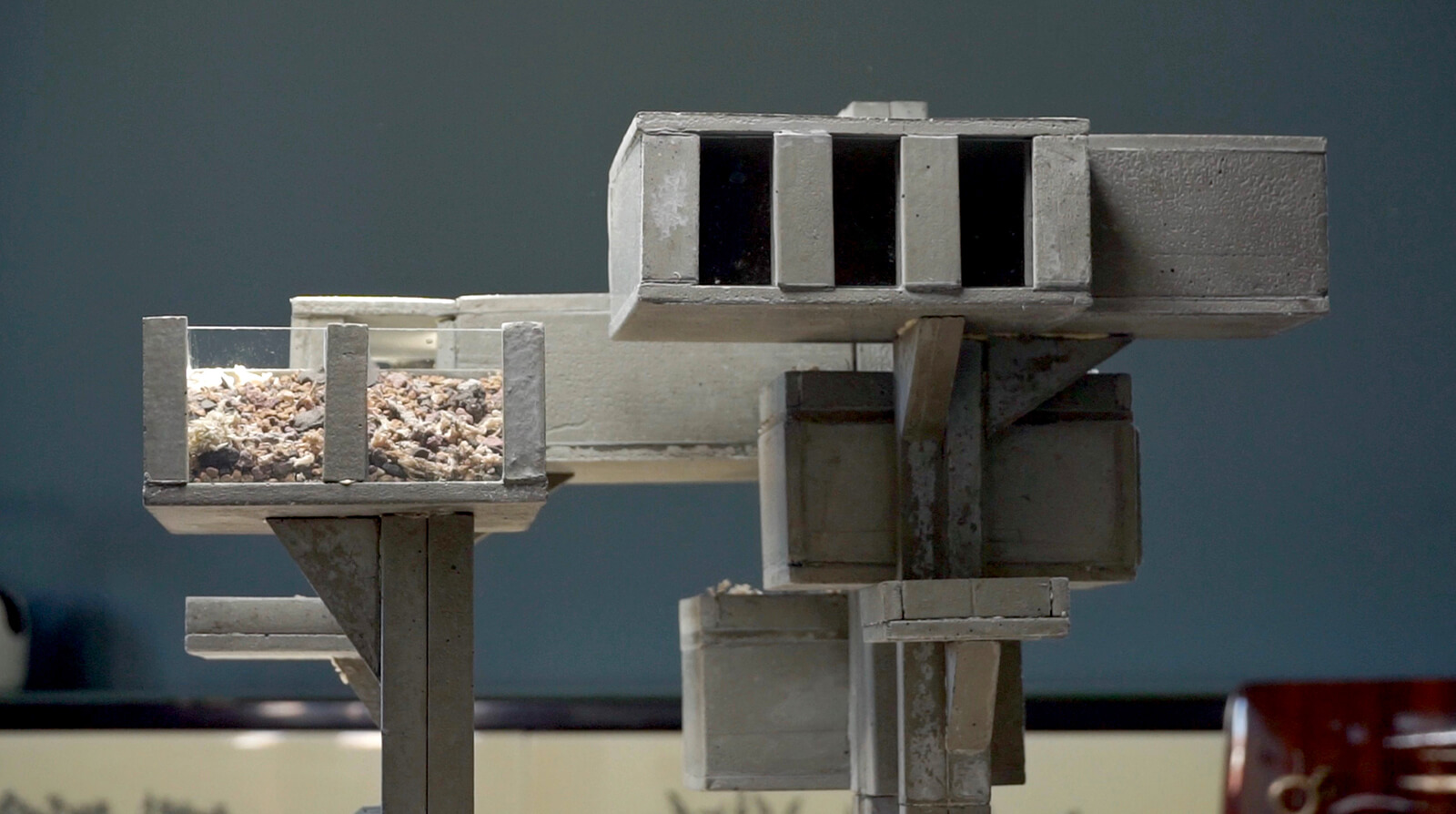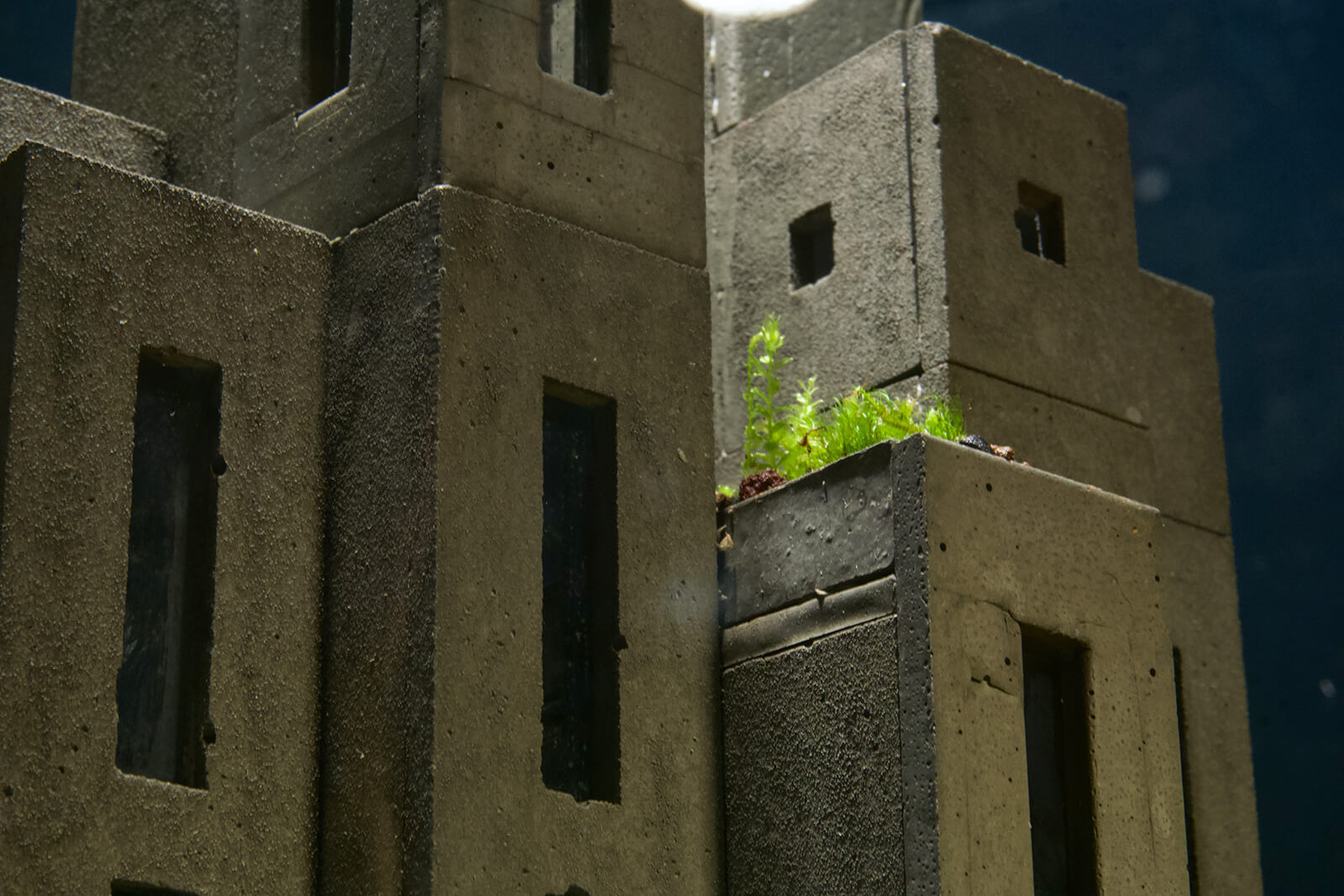 Mondobruto is not intended to depict collapse, but rather coexistence. Rather than disappearing, the concrete shifts in meaning as plants reshape its role. A shear wall becomes a shaded slope, a void becomes a thicket and the overall composition shifts from a static object to an evolving landscape. By making this process visible on a small scale, the sculptural series invites viewers to consider how architecture might embrace change instead of resisting it and whether design can account for the inevitability of transformation.