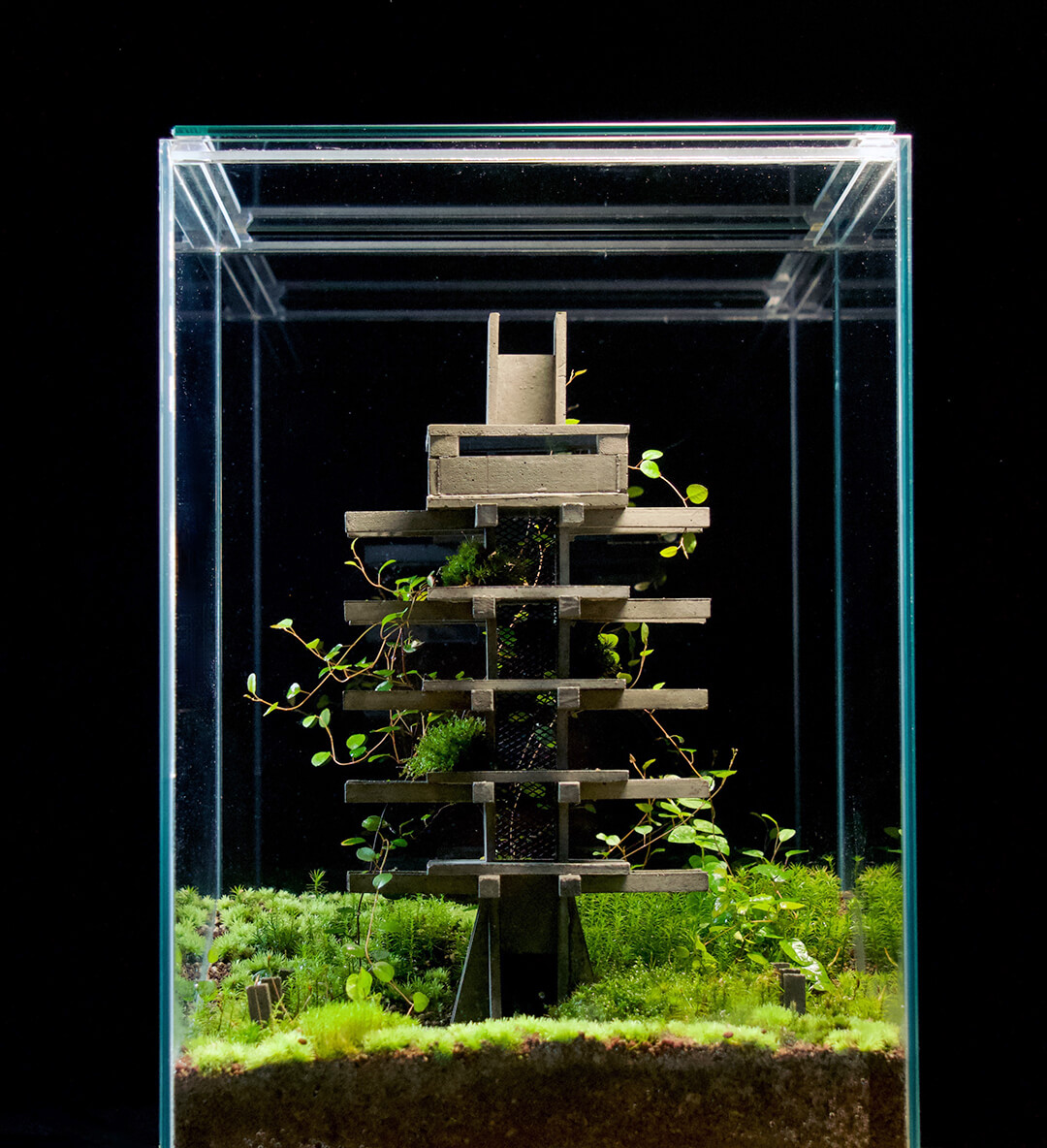The habitats also raise a reflective inquiry: what changes when the built world is left to its own fate? Is it erased by nature or reshaped into something else entirely? Within these glass confines, the answer unfolds at a pace the eye can follow; neither collapse nor preservation, but a shift into a new shared form.