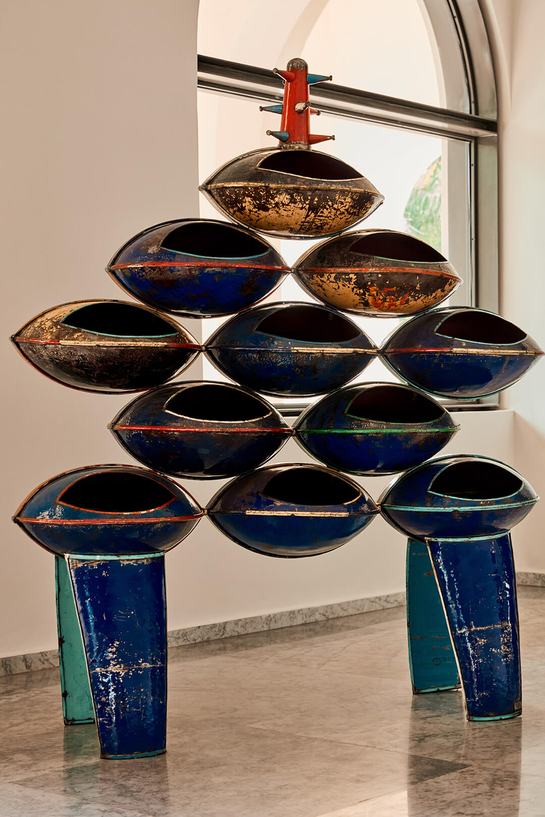 “The cohesion does not come from a single aesthetic or medium, but from a shared philosophy of making. Across all the works, there is a common understanding of the object as something alive, something that carries meaning beyond its function. The exhibition is therefore structured less as a sequence of categories and more as a constellation of practices,” Bellavance-Lecompte adds. The scenography at the Palais de Lomé reinforces this idea by ensuring that objects are in a constant dialogue with architecture, light and the surrounding landscape. This allows visitors to intuitively draw relationships across geographies and disciplines, making the exhibition experiential as they develop a deeper understanding of materials and narratives.