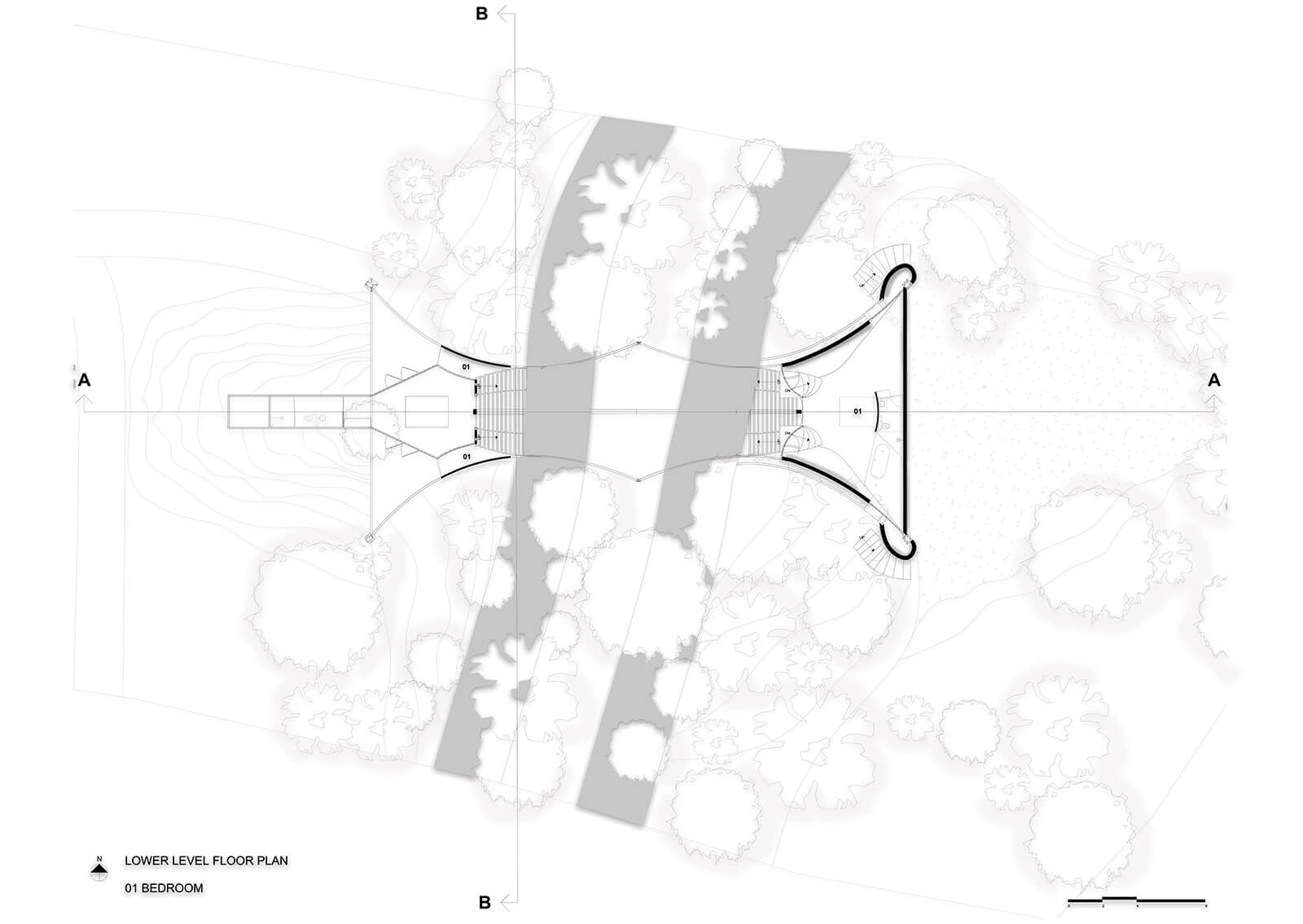Bridge House articulates a residential architecture that is as much about restraint as it is about innovative design. Wallmakers’ approach resists the impulse to dominate the site; instead, the house negotiates coexistence through lightness and minimal contact with the land. The decision to suspend the primary living volume is also an ethical manoeuvre and not just a structural one, foregrounding an architecture that acknowledges ecological thresholds and legal constraints as generative design inputs and not limitations to overcome. The architecture that emerges is audacious in form yet considerate by nature and is in constant dialogue with the natural surroundings.