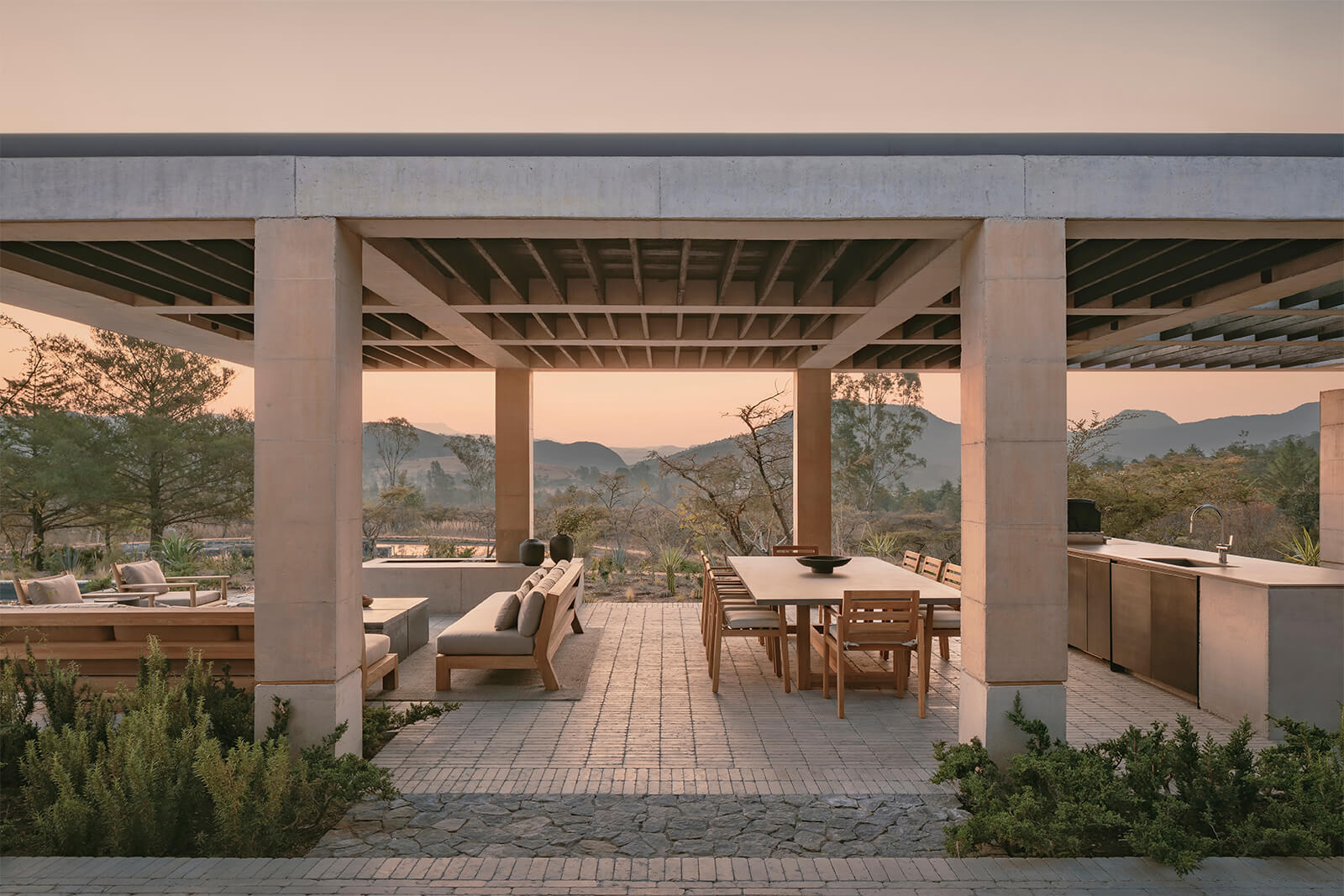 The house occupies a gently sloping plot, set between two ravines that connect a pine forest above with thorny low jungle vegetation below. This transitional landscape is warm and dry for much of the year, with hard light and limited shade. When Mexican architectural practice, Soler Orozco Arquitectos (SOA), led by Juan Soler and Alan Orozco, first visited the site together with the interior design studio DIRECCIÓN, directed by Mariana Morales, the decision was made to accept these conditions without mitigation. Rather than reshaping the land to fit a preconceived architectural language, the team allowed the land to establish the terms of the project.