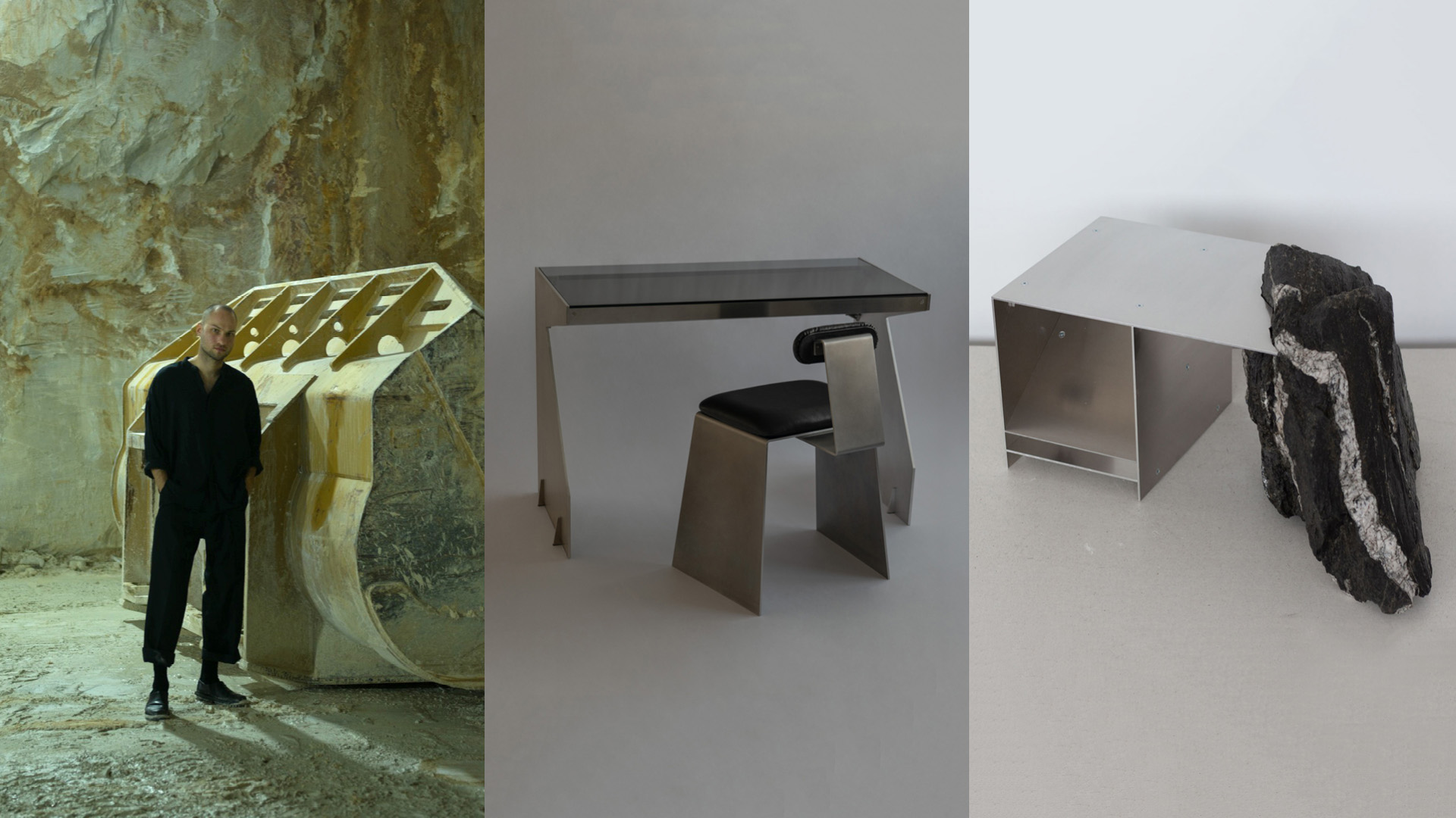 At first glance, Jakub Kubica's works look like they’re part of a dystopian movie’s set design. The sturdy, sleek and altogether sumptuous furniture designs by Kubica have a certain alluring quality, reminiscent of cyberpunk aesthetics—as if they were designed for a world that prioritises streamlined function and a certain detachment from ornamentation, embracing instead the cool, aloof traits of polished metal. A certain German sense for precision, then, is evident in his designs. Yet, offsetting the precision of metal, the Berlin-based artist and designer brings in the suppleness of leather or the roughness of stone to some of his creations.