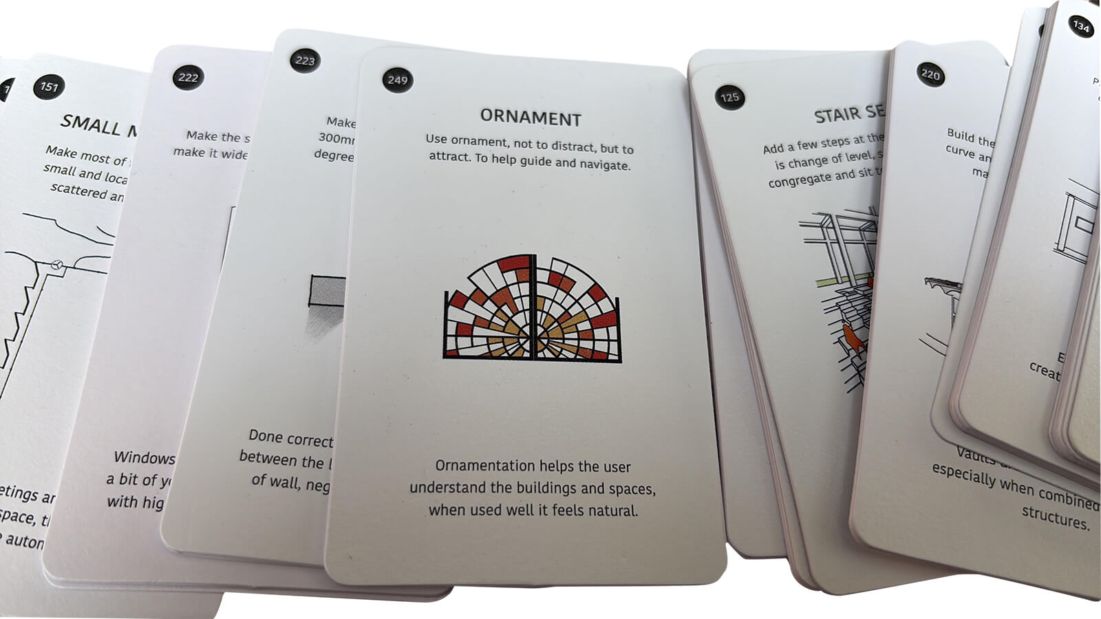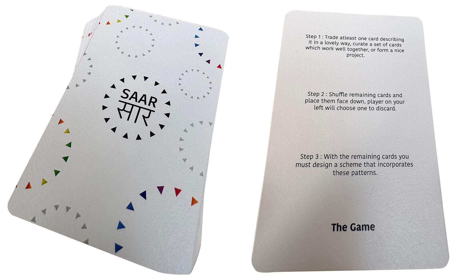 The gameplay is intentionally simple: players draw five random cards and explore how these patterns might work together. From there, they design a building or landscape within a limited time, using the selected patterns as guiding constraints. The real richness emerges in what follows—players present and explain their ideas, sparking conversations about intent, context and process. “As a player, you introspect, you draw and investigate your ideas, and finally explain them to others in the group. This process shines a light on the architectural process and ignites curiosity towards the ‘why’ and ‘how’ of architecture,” Ananya Singhal, partner at Studio Saar, told STIR.
