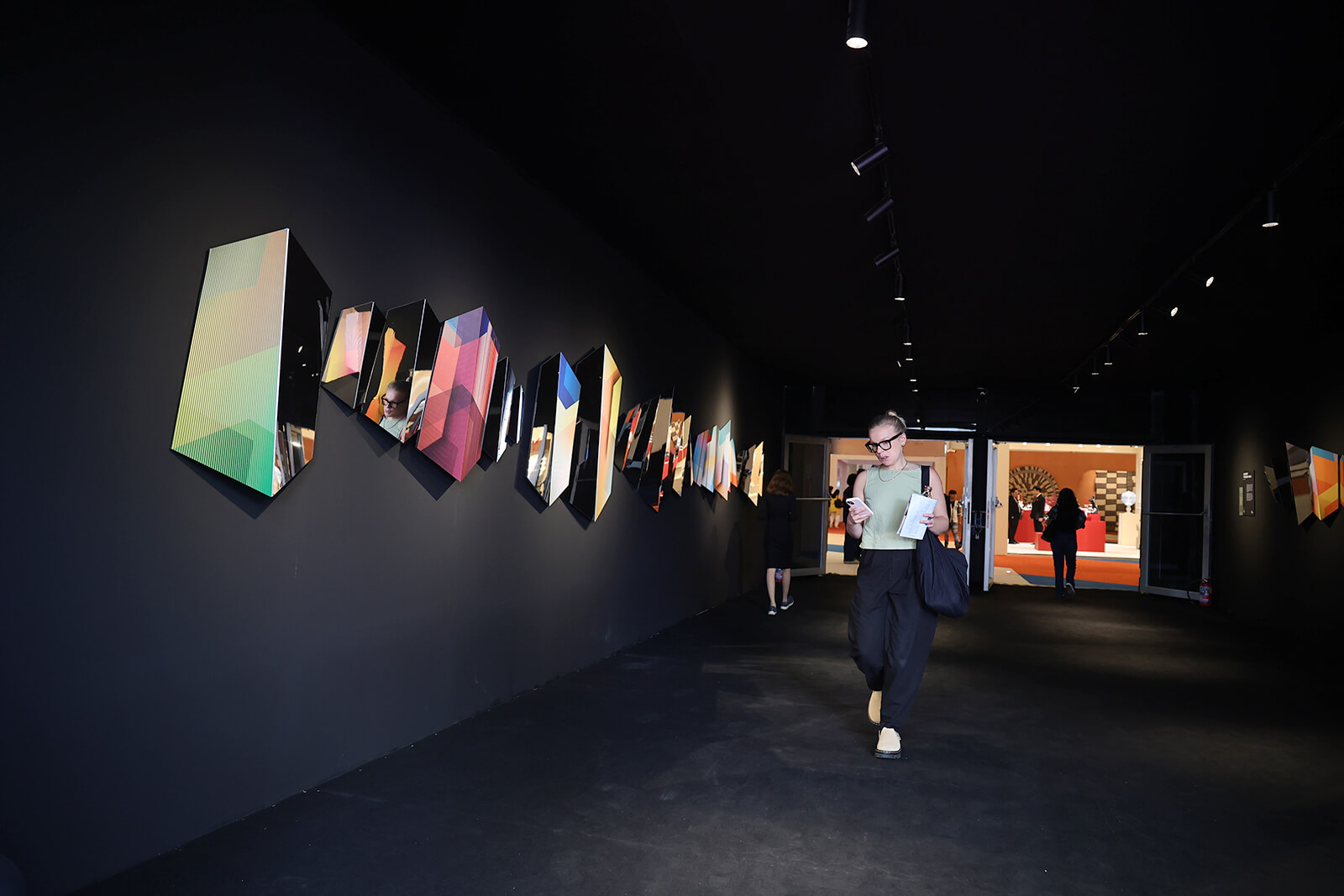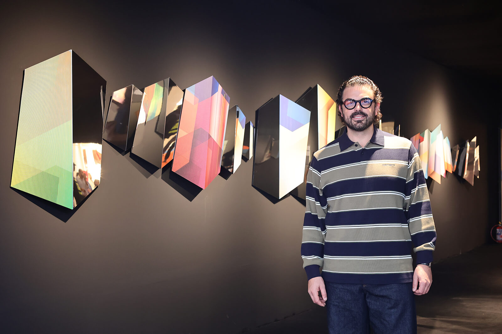 Entry into the Design Mumbai premises was mediated by a tunnel-like installation that abstracted the movement and frenzy of the show through shifting, fragmented glimpses. Journey through India was Venezuelan graphic designer Juan Gerstl’s presentation for the fair. Conceived as a long, zigzagging form that spanned the breadth of the entrance wall, the installation was crafted from mirrored, geometric panels printed on aluminium composite. Through UV-printed colour and reflection, the work actively engaged visitors, folding their presence into the artwork and transforming each passerby into a moving element in its shifting imagery.