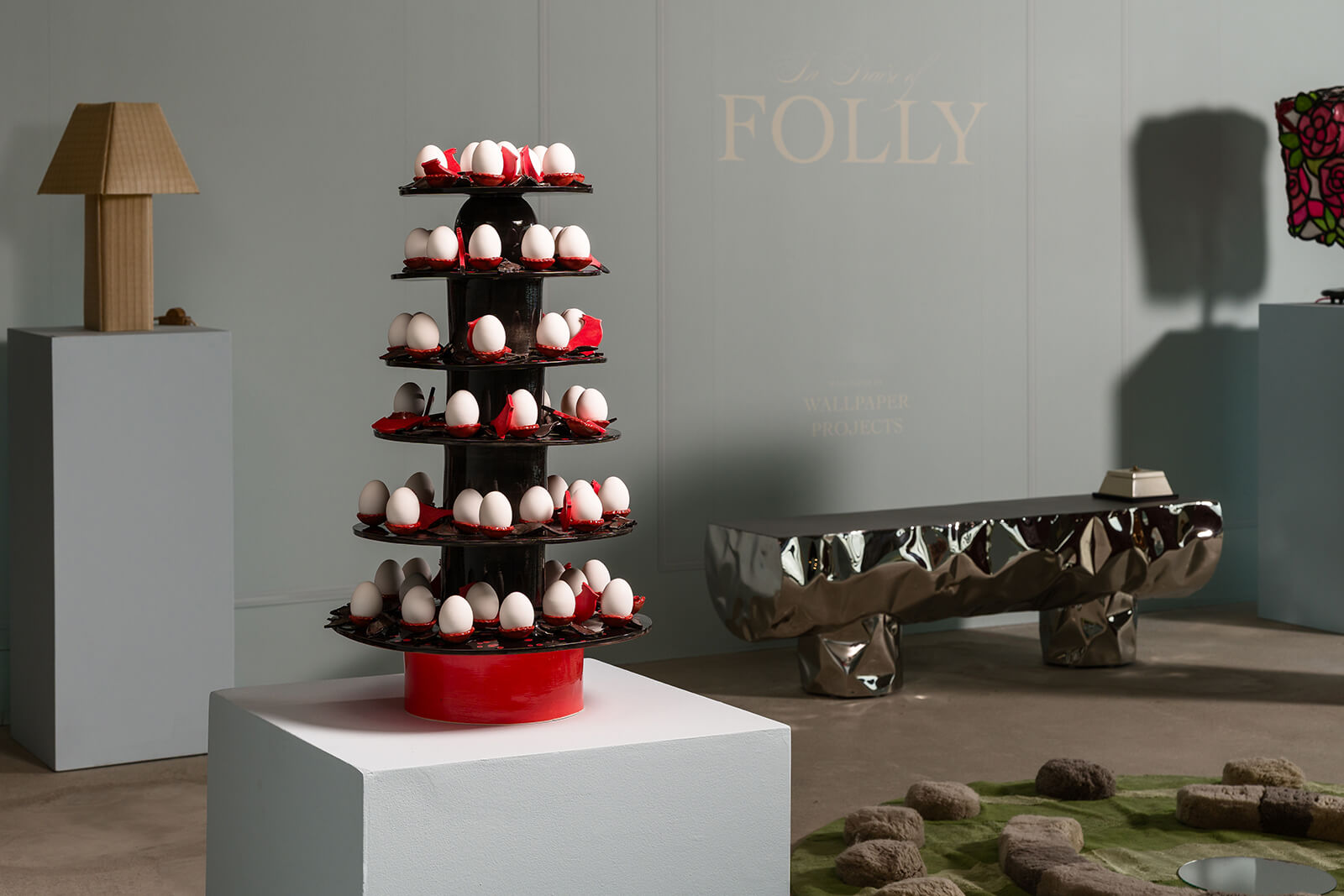 CURATED, under its theme In Praise of Folly, spotlighted emerging and mid-career studios unafraid of wit or politics. Georgian designers Tika Shelia and Ano Jishkariani of Around the Studio presented a stainless steel Riot Shield Screen referencing unrest at home. US-based Autumn Casey offered Fairytale, a lamp design riffing playfully on Tiffany glass. Fefostudio’s Fifth Stage, a surreal, hand-built ceramic egg holder, merged gastronomy and design. French designer Lucas Cambier blended brutalist rigour with hand-finished warmth in the Garriga Chair, and White Dirt’s quilted wall pendant blurred light, sculpture and textile.