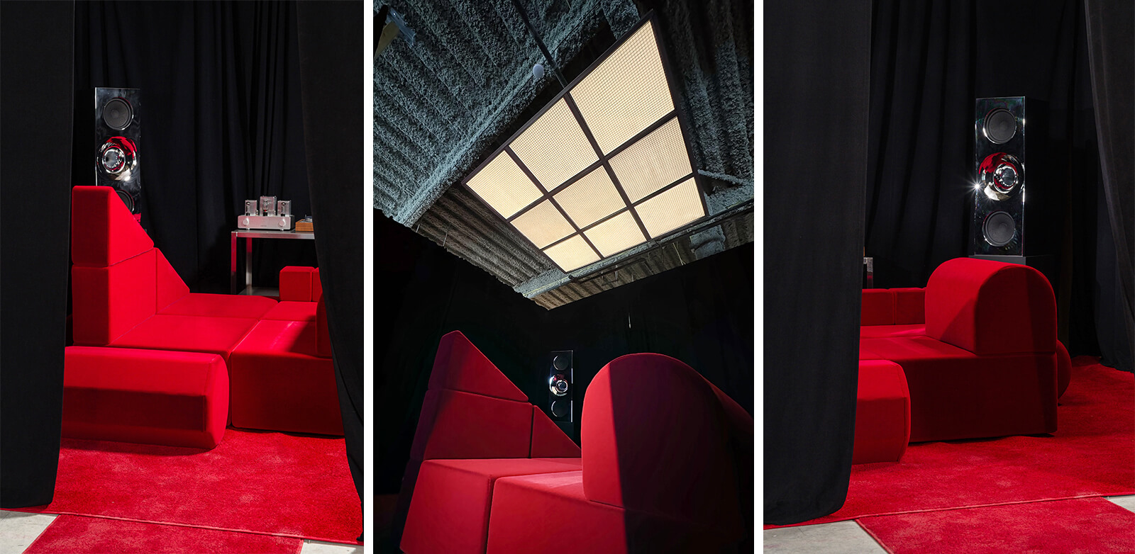 VIGNETTE, presented with Farrow & Ball and curated by Michael Hilal, invited designers to stage scenes where the vintage met contemporary, including works by Emily Thurman Interior Design and Umberto Bellardi Ricciv. At the same time, the NEW GARDE section spotlighted younger galleries and collectives, among them Tang Thousand and Silence Please, who built a unique listening room for the new Pilot Sofa, layering music and light into the design. Another experiential booth came from the collaboration between Studio S II and Bond Hardware, where music and fashion were merged with speakers inspired by body modifications, a modified Marcel Breuer chair was presented alongside intriguing jewellery, complete with an on-site piercer.