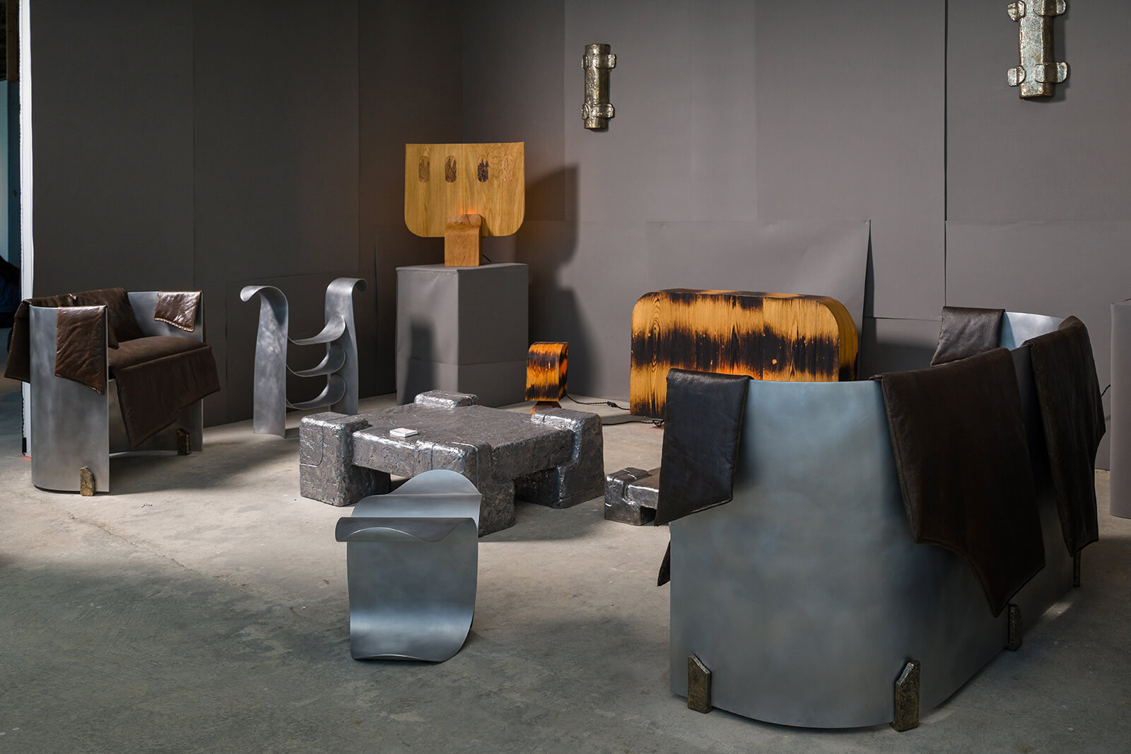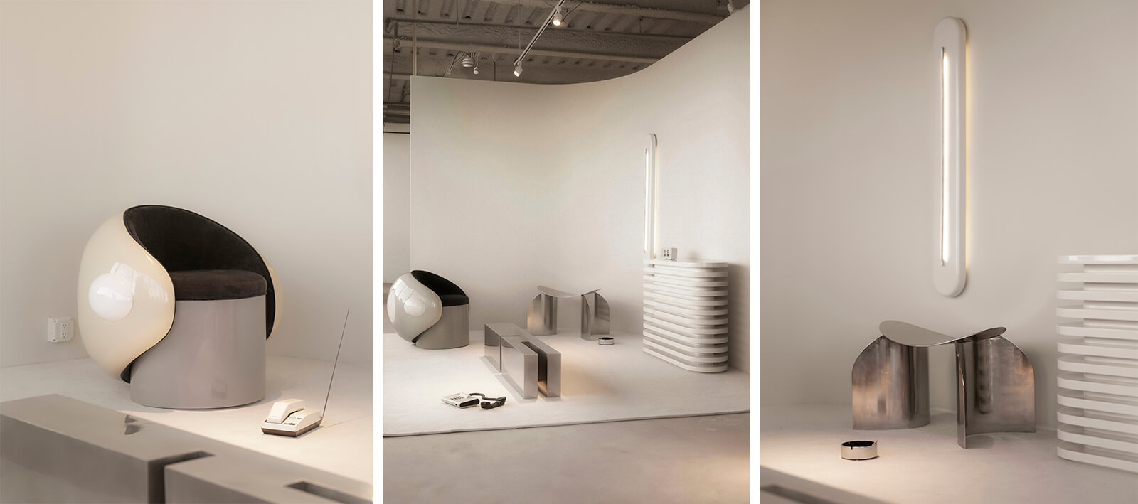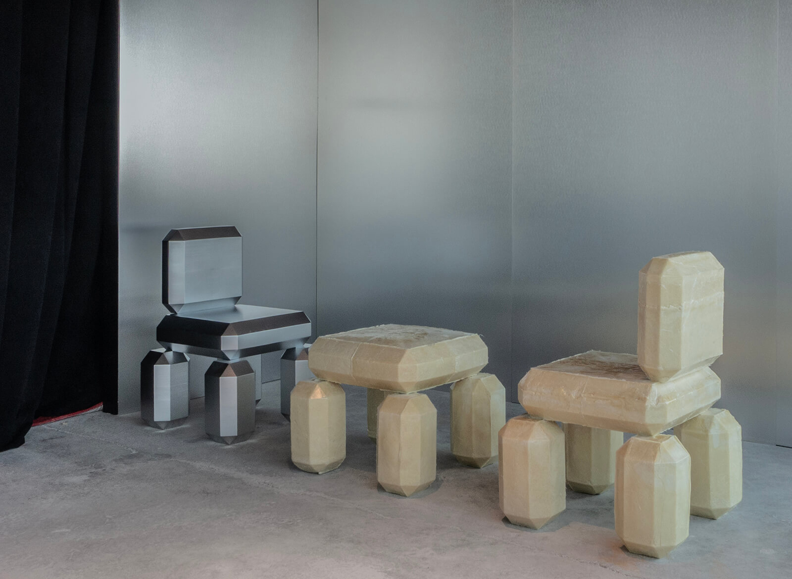 In the MAIN section, where studios and designers presented their recent collections, New York studio Kawabi greeted visitors with lamps made of Japanese kozo paper, delicate yet confidently scaled. Design collective (I)NTERVAL built a cinematic living room oscillating between nostalgia and speculative futurism. UK-based Novocastrian’s Otterburn Chess Table in brass, oak and leather commanded attention, while artist Francesco Rosati’s Silver Tablecloth – Idea for a Table, part of playinghouse's group show, cast shadows of pause. Antwerp-based gallery Uppercut staged a dialogue of textures by pairing Linde Freya Tangelder’s brushed and cast aluminium furniture designs along with lacquered cotton pieces, with Yoon Shun’s aluminium and oak wood furniture pieces.
