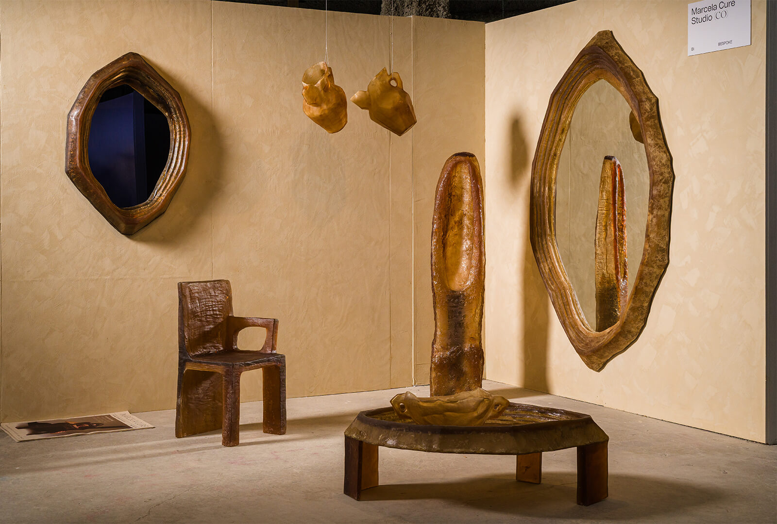 The BESPOKE section emphasised craft and intimacy. New York-based designer Kritika Manchanda’s As You Were offered a post-functional chair-and-table that shifted between structure and softness, holding quiet domestic rituals. Colombian artist and designer Marcela Cure explored memory, materiality and maternal legacy in her pieces, as Turkey’s HOMA fused marble and mirror in its Orbis collection. Montreal’s Atelier Alz and the duo Alexis & Vanessa reminded visitors of the beauty of pared-down woodwork and material purity. Conversely, Syndicate Architects presented their Polygon Collection in a ‘furniture as a process’ concept. Instead of bringing finished pieces, they transformed the furniture into a process by collaborating with a small workshop in Manhattan and creating only two new pieces just days before the fair, using locally sourced materials.