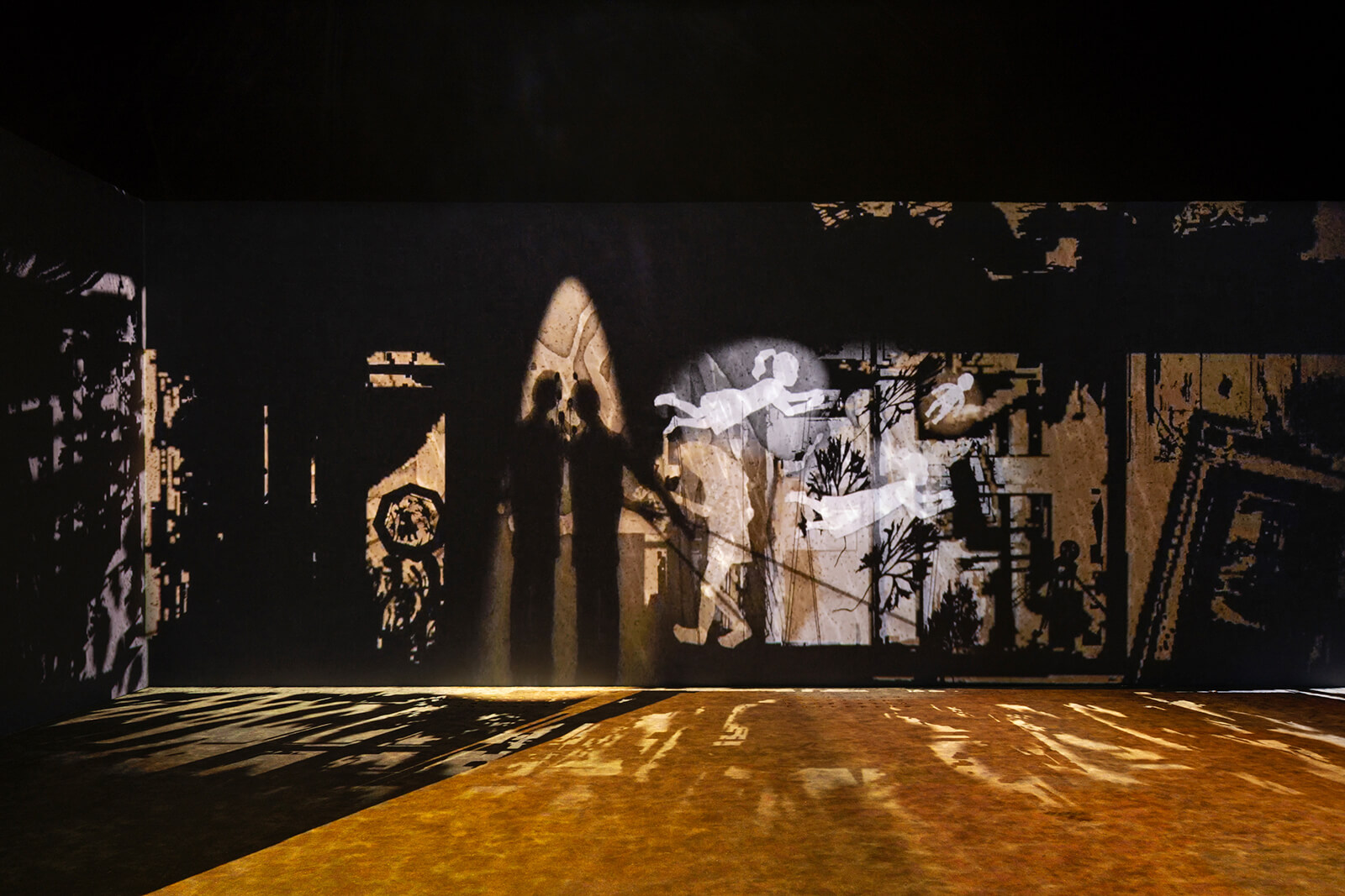 A section of the exhibition is devoted to works that investigate the relationship between people and urban environments. A work that could be adapted with little to no changes in every major city of the world is Yang Guangnan’s Smog (2016), which shows a closed mechanical system filled by the artist with smog-filled air from Beijing. The machine works constantly, circulating the air and trying to purify it in a Sisyphian labour that evokes despair and desperation without any anthropomorphisation. Ecocentric artist Long Pan finds the beauty within the damage with her series of ceramic leaves that shift from pale yellow to brown and dark green. Leaves (2022) incorporates the appearance and plant ashes of ‘hyperaccumulators’—vegetation that absorbs excess heavy metals from soil, a symbol of nature’s often silent acquiescence to a world hostile to the organic.