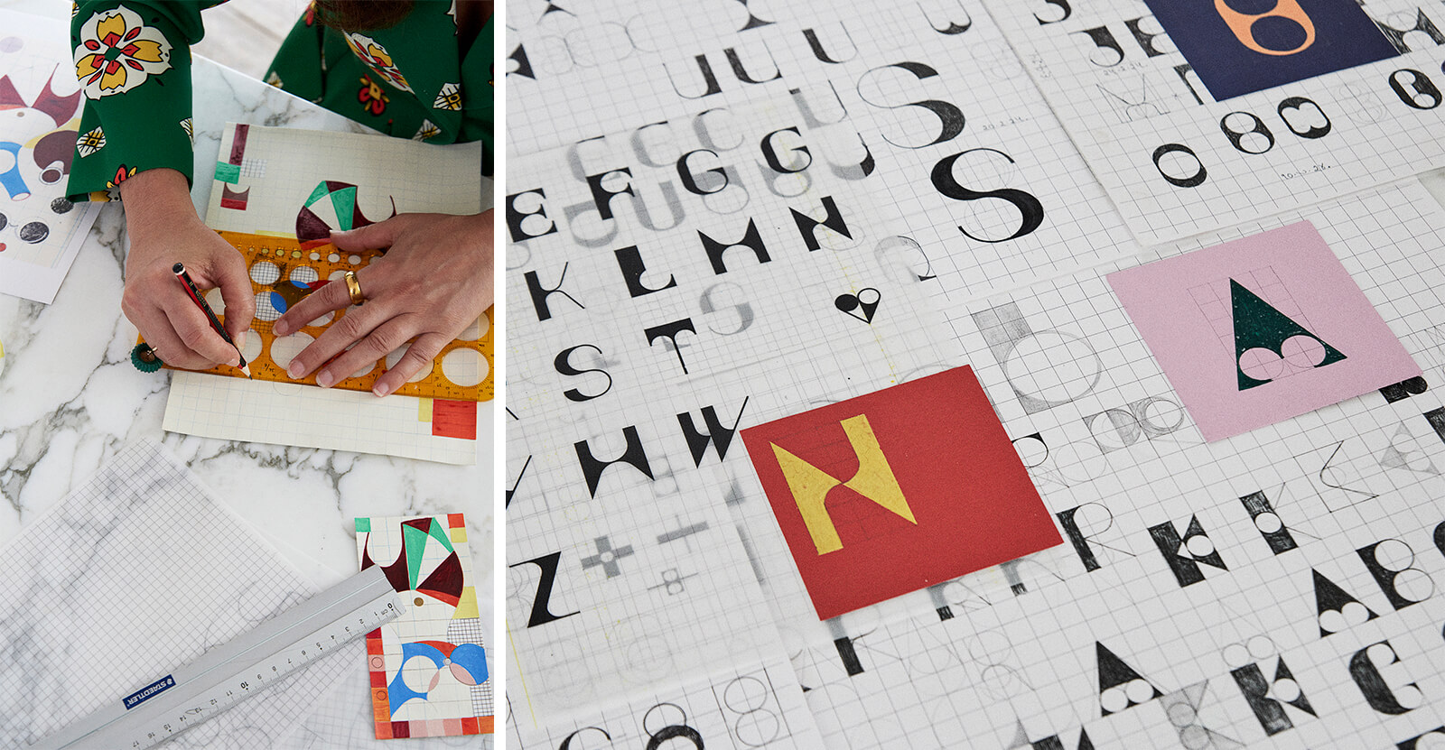 Alongside the cabinet, Doshi presents her first custom typeface, originally drafted by hand and later refined digitally; a sculptural alphabet of ‘jewel-like’ forms, part ornament, part architecture. The NGV describes it as “bold and ornamental”, where each letter feels like a found object, meticulously milled. Together with the drawings (Doshi’s first to be exhibited independently), the typeface extends the cabinet’s universe into language itself. As NGV states, “Together, these elements represent a kind of manifesto for Doshi’s practice – complex, layered and deeply rooted in cultural narratives, celebrating design as a living practice of care and creativity.”