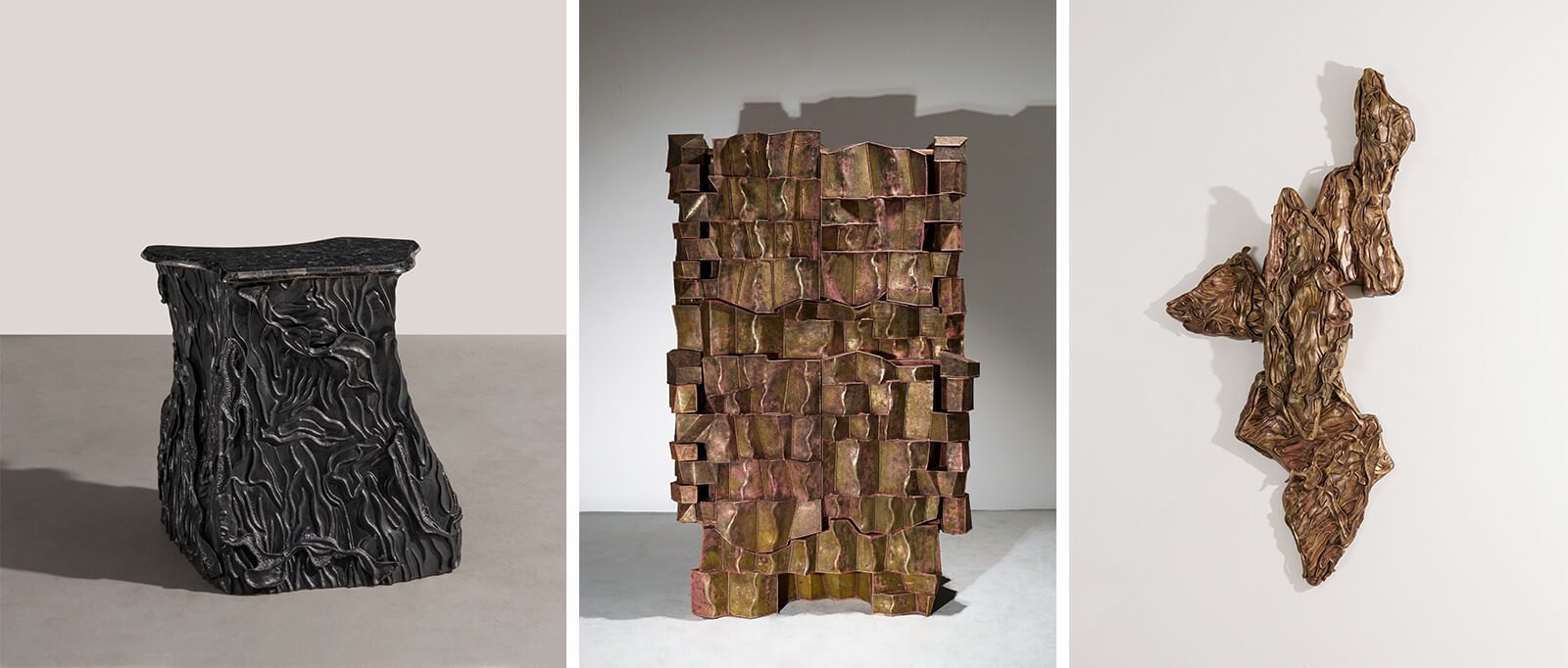 Hyderabad-based Nolwa Studio will display its inaugural Bidri collection, which features a series of mirrors, lamps and wall pieces wherein the 600-year-old metal inlay craft of bidri is explored via parametric design. Vikram Goyal will further expand on the exploration of Indian metalwork traditions with his limited-edition furniture and collectible objects that reinterpret archaic crafts in contemporary moulds. The highlight of his showcase at the fair is Garden of Life, a monumental multi-panel mural that chronicles nature and mythology via intricate craftsmanship. Some of his other pieces to be displayed at the art fair include Mesa Console and the Shaded Graphite collection.