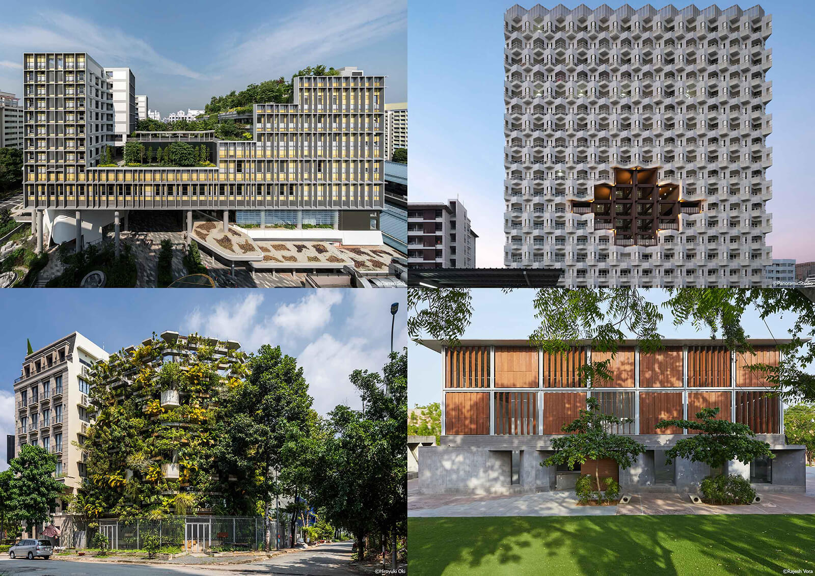 Vo Trong Nghia Architects (VTN), founded by Vo Trong Nghia in 2006, epitomises the essence of Green Architecture, seamlessly merging nature, local vernacular and contemporary design. Their projects, such as the Urban Farming Office (2022), showcase a harmonious blend of lush greenery and modern construction techniques, creating spaces that are not only visually stunning but also environmentally sustainable. Similarly, RMA Architects, led by Rahul Mehrotra, emphasises the evolving relationship between architecture and nature in projects like the Lilavati Lalbhai Library (2017), where special craftsmanship and construction techniques mediate the transition between external and internal environments. Mehrotra's profound engagement with urbanism, reflected in his writings and advocacy work, has given rise to a new conceptualisation of the city termed the Kinetic City, redefining our understanding of urban spaces and their dynamic interactions.