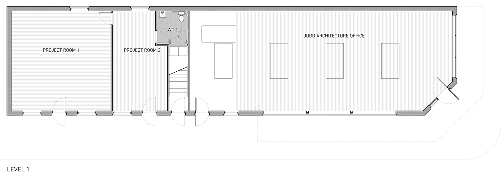 After Judd’s death in 1994, the Judd Foundation took on the responsibility of preserving these spaces, not as static museum spaces, but as working environments, living archives and ongoing conversations with the past. One of the most significant of these is the Architecture Office, a 5000 sq ft structure Judd purchased in 1990 and adapted for his own use. Built at the turn of the 20th century, the two-story building originally operated as a general store and later housed various commercial businesses. It sits directly across the street from Judd’s Architecture Studio and stands as a primary example of his approach to reimagining existing structures, not as blank slates, but as complete systems worthy of attention and care.