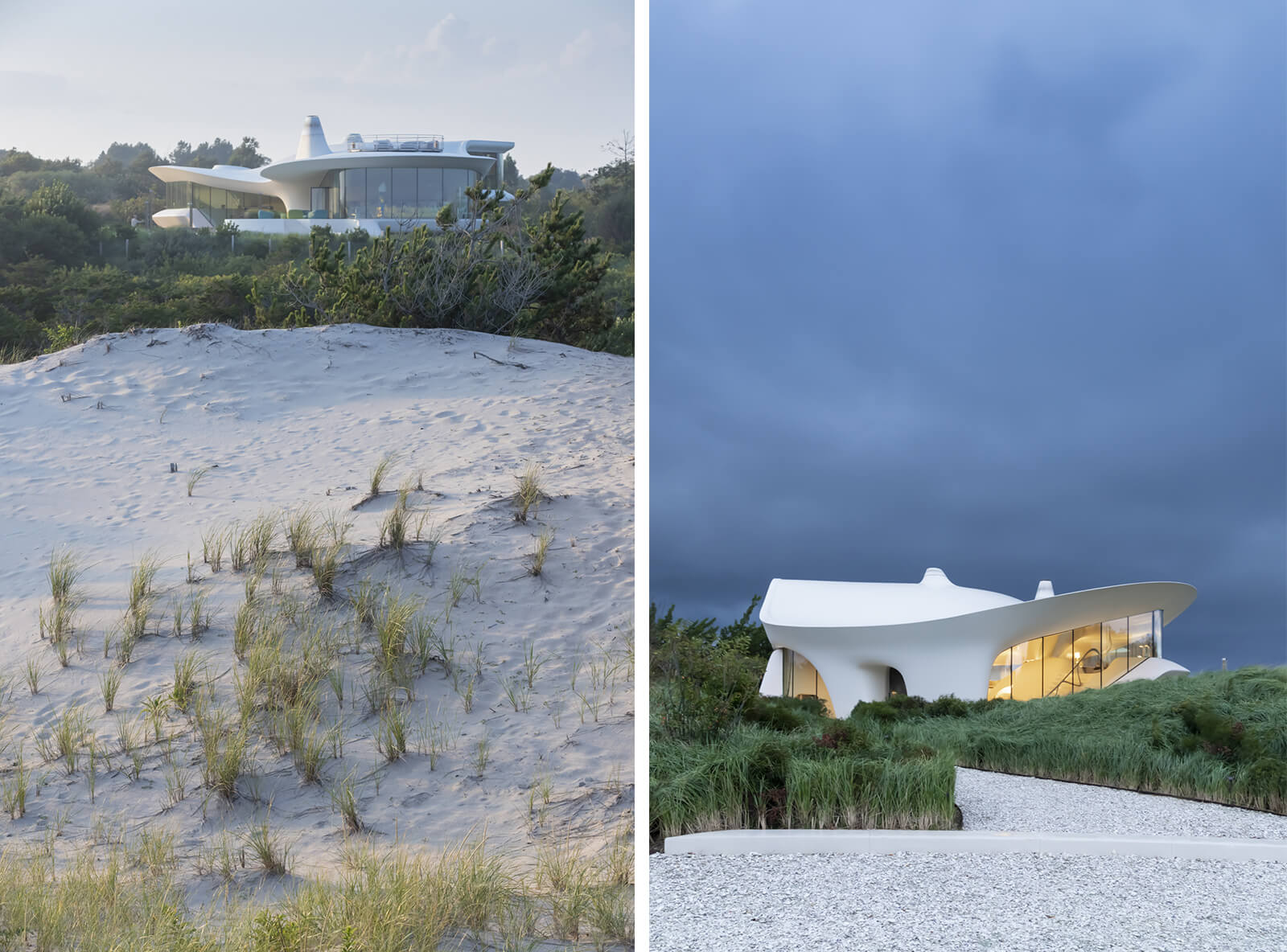 Atop the grassy mounds of Atlantic Double Dunes in East Hampton, with vast stretching waters of the Two Mile Hollow Beach in the background, an off-white fluid form sits in sheer alienation on its land. Situated there as the home of American collectors Julie Reyes Taubman and Robert Taubman, the building is the first completed single-family residential project by American firm, Diller Scofidio + Renfro (DS+R). A mullion-free glazing system, a fiberglass and foam roof, and generous open spaces orchestrated around the irregular contours of the landscape define the architecture of the house. Referred to as the Blue Dream, the name of the house coincides with the title of a recently published monograph authored by Pulitzer Prize-winning architecture critic Paul Goldberger. Blue Dream and the Legacy of Modernism in the Hamptons: A House by Diller Scofidio + Renfro narrates the story of a house that seeks to reinvigorate the spirit of the avant-garde in the Hamptons. With photo documentation by Dutch photographer Iwan Baan that shows the house across four seasons, the book features insights by Goldberger delving into the complex processes that generated the idea of the house to a roster of architecturally ambitious modernist houses on Long Island.
