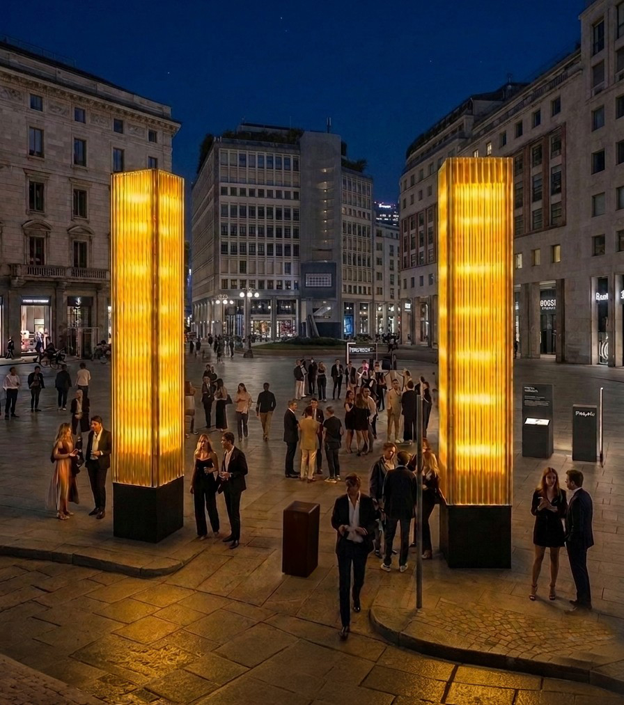 PolyPiù, an Italian company and leading manufacturer of polycarbonate solutions, is set to unveil Luminous Skin, an installation in which light is abstracted as ‘the first gesture of hospitality.’ Ten illuminated sculptural towers will adorn the streets of Durini, designed by Studio AMS, to represent the Milanese lifestyle and identity. Made using polycarbonate sheets in a prismatic finish, the towers will produce striking effects, along with resisting weathering and harsh UV rays to ensure performance over time.