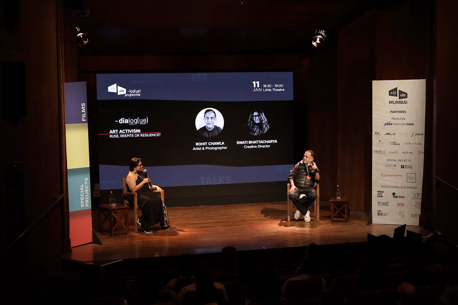 The second day of the programme offered viewers a dive into Sustainable Fashion: Reality versus Rhetoric, a ~multilog(ue) moderated by Kamna Malik with panellists Sanjay Garg from Raw Mango and Mevin Murden, Director of Education, Istituto Marangoni School of Fashion and Design Mumbai. Artist and photographer Rohit Chawla with Creative Director Swati Bhattacharya contemplated art, change and protest in their ~dialog(ue) Art Activism: Ruse, Respite or Resilience?. Dr. Cleo Roberts-Komireddi, Consulting Editor - Arts, STIR, moderated an impactful ~dialog(ue)—Making a Montage: Impossible Places—at the JB Theatre with panellists Martino Stierli and artist and photographer Dayanita Singh, dissecting the nuances and layers of architectural photography through the speakers’ oeuvres.
