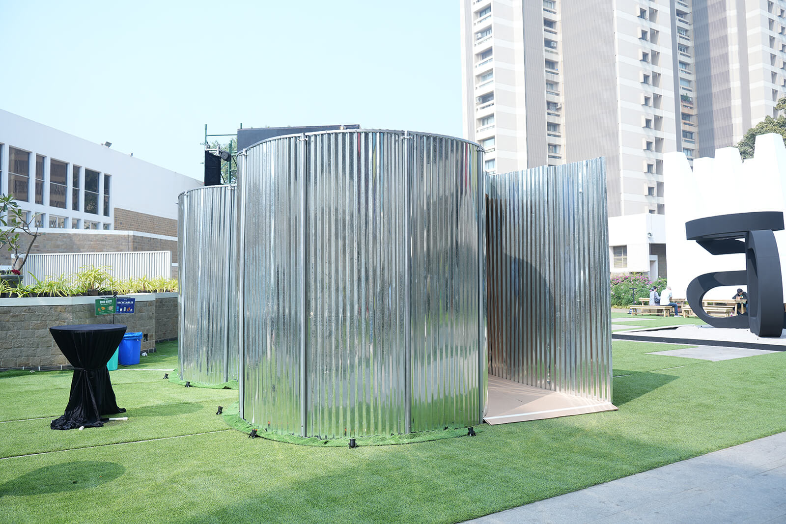 On an otherwise culturally packed weekend for Mumbai, the rally of oncoming footsteps for the entirety of the festival and packed houses for both our late night and morning screenings emerged as early indicators of its success. The JSW Pavilion Park particularly lent itself to multifarious and tangible methods of engagement that kept visitors exploring, occupying and resting in the rather unconventional spatial caveats the pavilions created. Spread across the venue’s Open Air Plaza and Experimental Garden, the pavilions in the JSW Pavilion Park, responding to the curatorial brief: Frames of Reference, used structural dynamism and a spectrum of visual textures to invite attendees to not just explore but also gauge these cinematic pavilions in more pedagogical ways, prompting reflections on space and its occupation.
