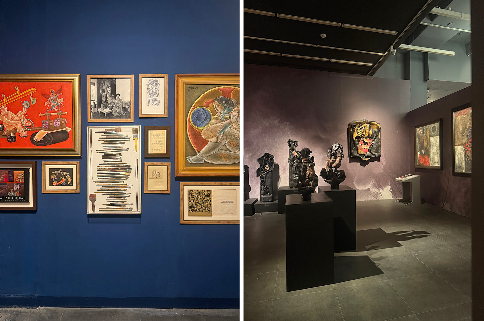 Apart from the dialogue between the personal and the political, the sheer breadth of the medium is what makes the show feel so uniquely expansive. In one of the sections, works created with burnt wood and ceramics channel Gujral’s visceral reaction to the Delhi riots of 1984, the loss of Sikh lives and the chaos of mob violence. The different sections in the gallery make the transition from his works on canvas to murals and from there to sculptural works in the mid-70s seem cohesive. It details a perceptive shift in the manner in which Gujral thought of his artistic production, beginning from an interior perspective that drew on the sociopolitical, to wanting to release art from the confines of the gallery.