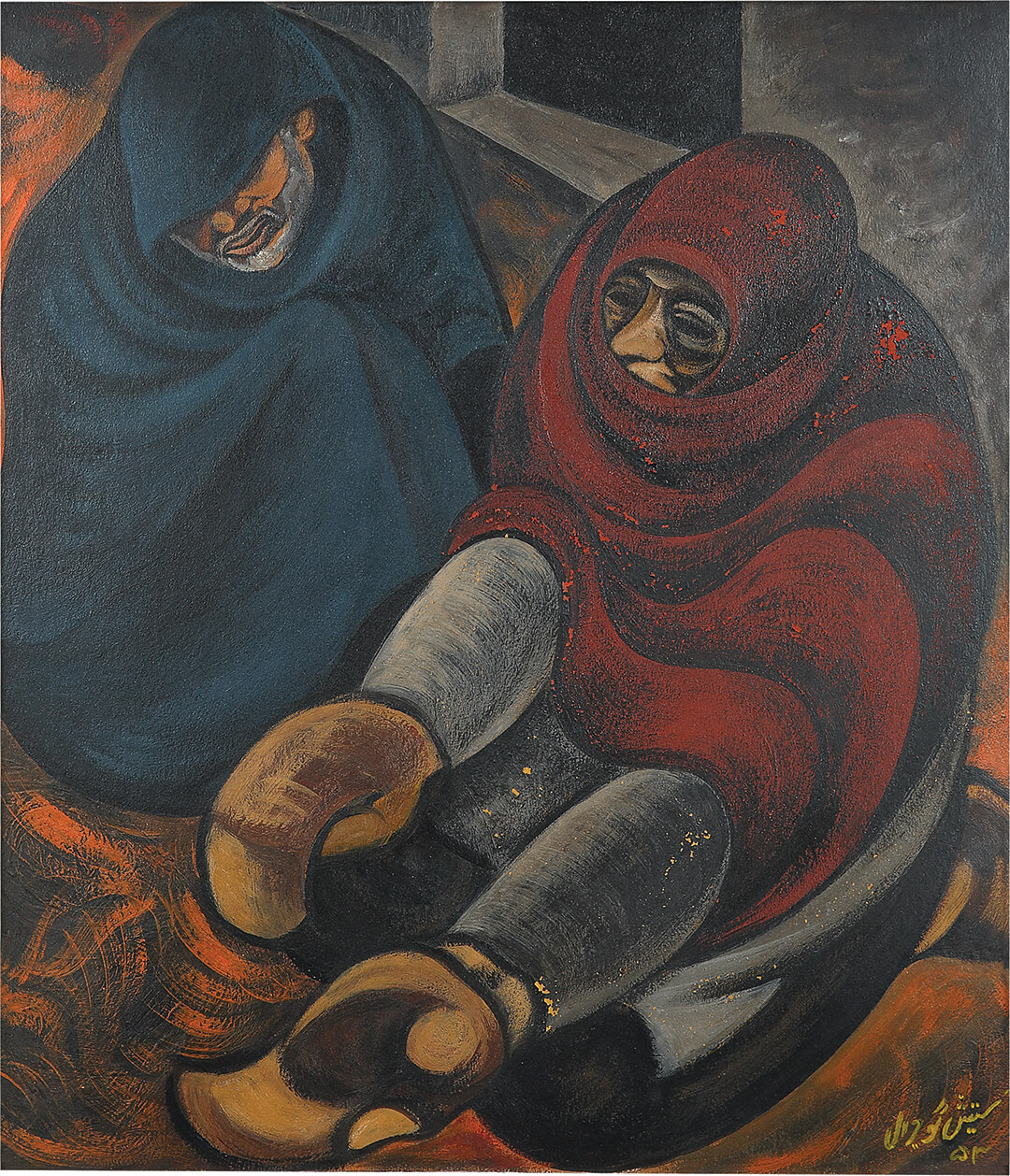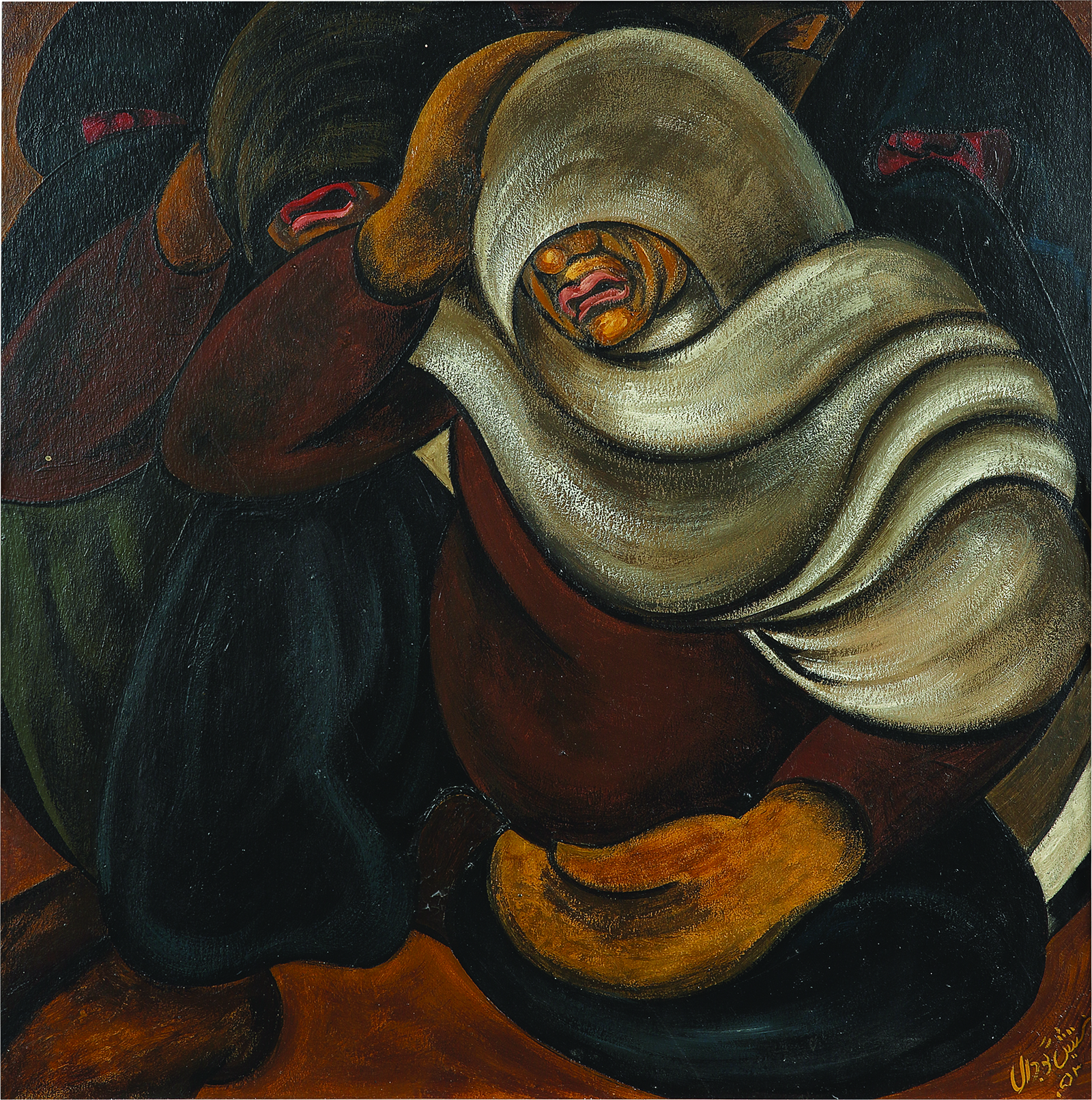 Deferring from the personal, A Dark Midnight: The Partition Series, works from the 1950s, depict the pain of Partition, rendering the devastating cleaving of India that left millions of people displaced in vivid canvases. Mourning En-Masse shows a woman with a distorted face and her head covered, a poignant portrayal of the insurmountable grief that still shrouds those first years of a nascent country. The show is interspersed by self-portraits of Gujral from three different time periods, underscoring the inherently introspective practice that he honed, one that did not shy away from depicting pain.