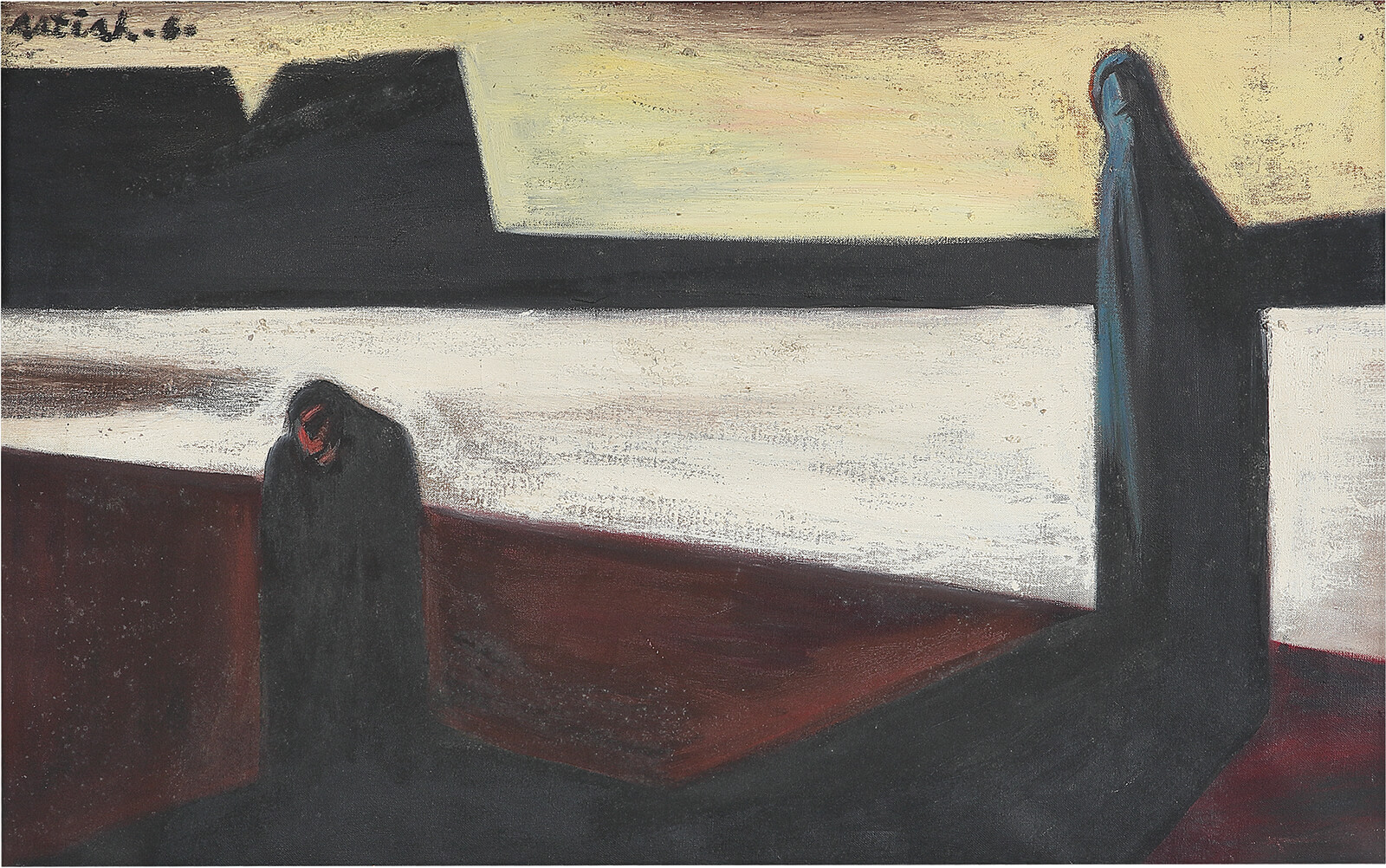 “Gujral’s pictorial work appears to us to be of utmost importance…We believe that it contains all the essential elements of his nation, the great civilisation of his own country,” Rivera once said of the artist. The show underscores this dialogue in the way the different works are grouped together. Opening with an audiovisual installation of flowing water juxtaposed by mountains that references Gujral’s hearing loss and subsequent turn to drawing and art as a means of communication, the second section, Loneliness and Strife: The Mexico Year, features works from 1952 created during his time in Mexico.