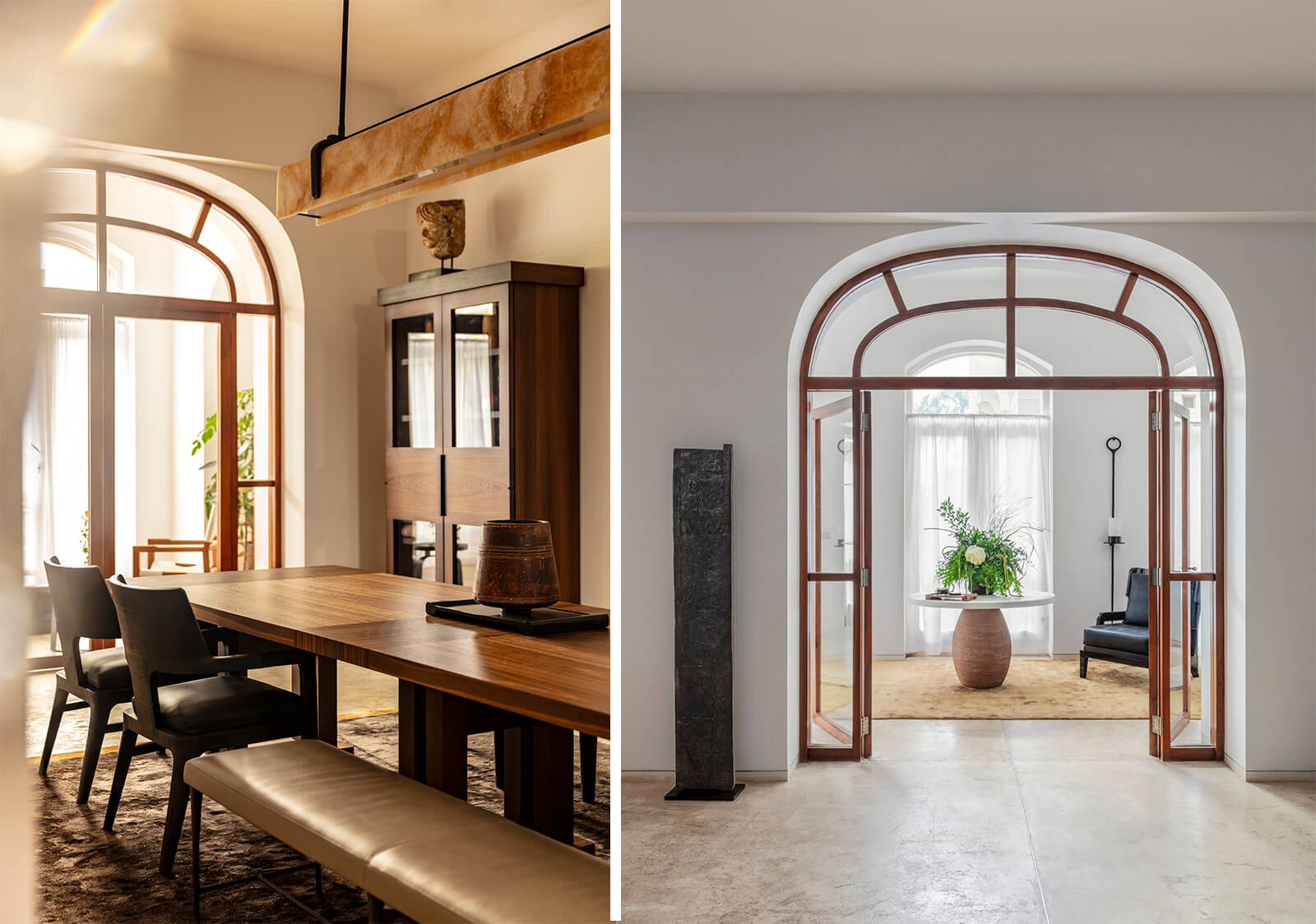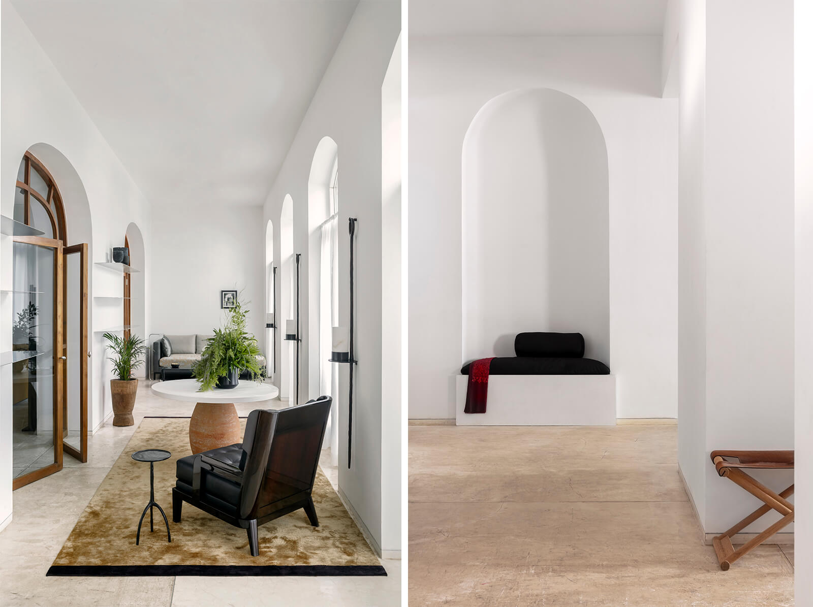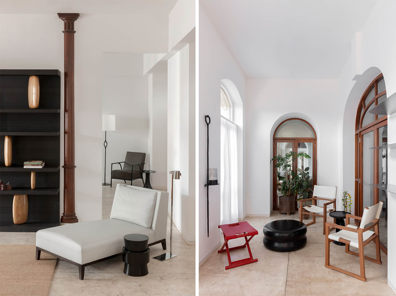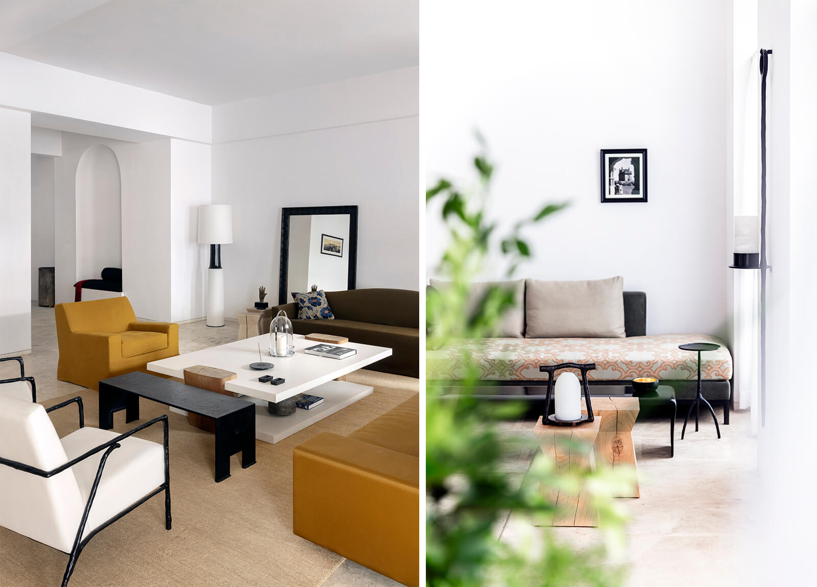 “Relevance is one of our utmost values at Liaigre. For our temporary installation in Mumbai, we didn’t want to mimic Indian culture. We rather wanted to create a conversation between our French aesthetics and Indian culture, in a very humble way,” Caillaud told STIR. For the showcase, the team has put together some of the company’s most recognisable works from its vast catalogue of furniture and lighting. For their debut in India, their signature philosophy of restraint is offset by a subtle infusion of colour. A warm palette of yellow, bronze, mustard, green and ochre—meant to evoke the vibrancy and vitality of the country—pervades the showcase, most notably in the upholstery fabrics of the sofas and armchairs. On display in the gallery is the Saint-Germain armchair, exemplifying the brand’s attention to juxtaposing modernity and tradition through form and material choices. Similarly, other seating designs on view include the Nagato stool in natural oak—which embodies their attention to materiality through a minimalist, almost brutalist form—as well as the Basse Terre and Augustin sofas.