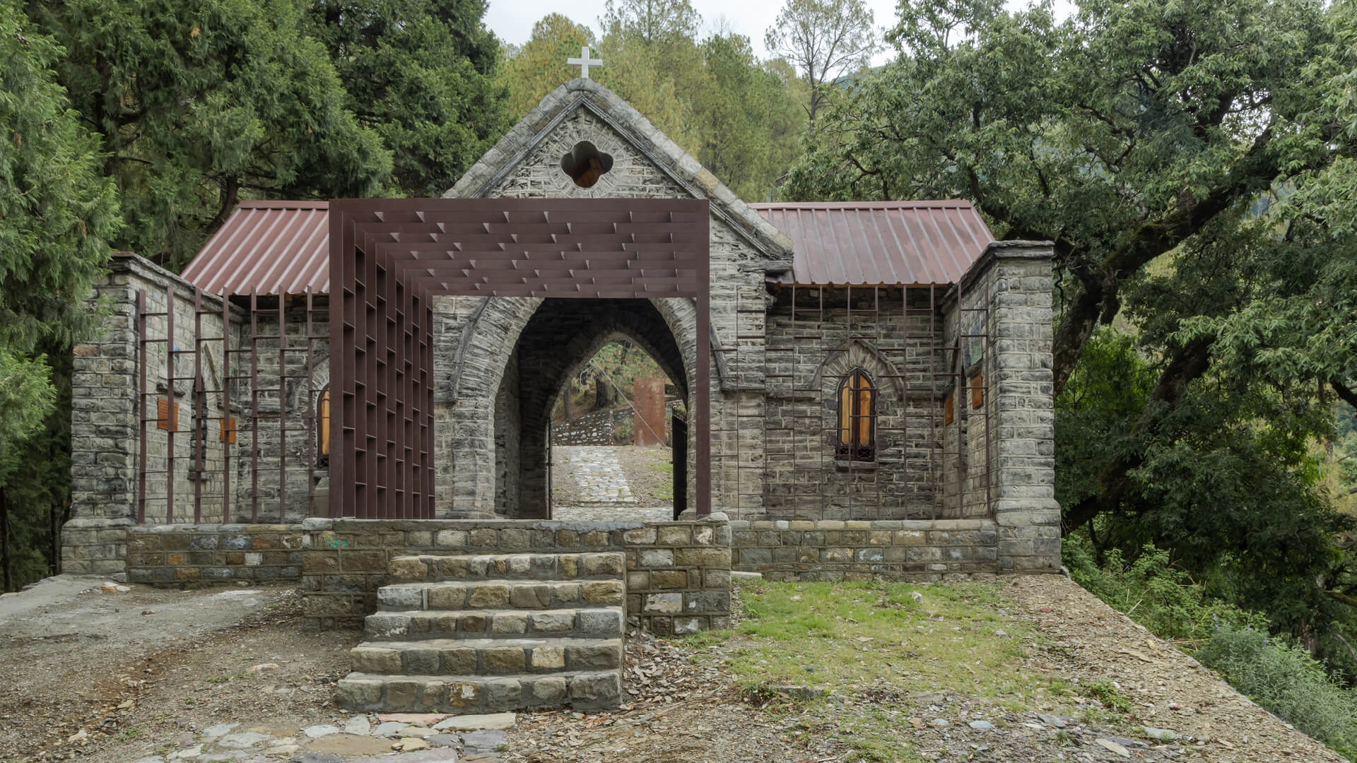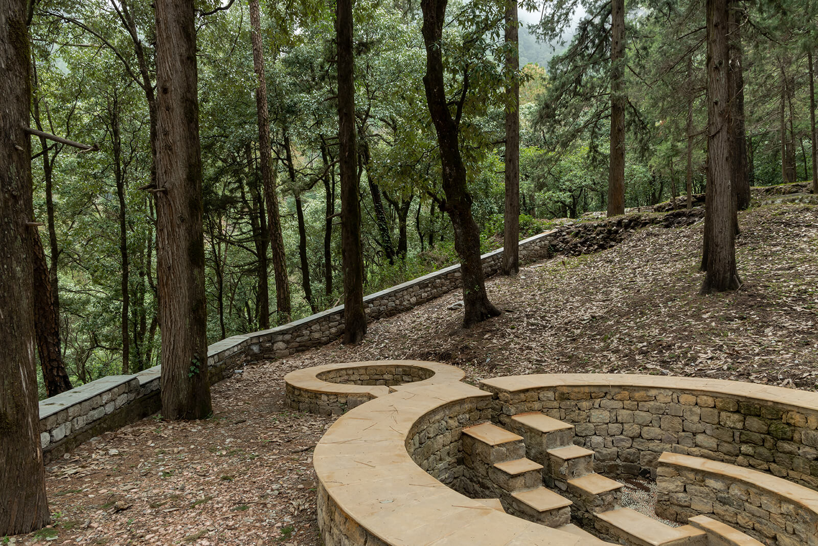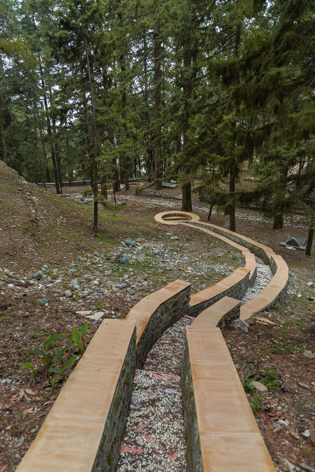 The initial brief from the Uttarakhand Government focused on making the cemetery accessible and safer for public use. Early discussions made clear that the site could not be approached as a conventional park or a redevelopment project. Questions of access and maintenance gradually shifted towards considerations of memory, reverence and the extent to which intervention was appropriate. The brief thus evolved into creating a space that one can access and experience gently without erasing or overpowering its historical and ecological character.