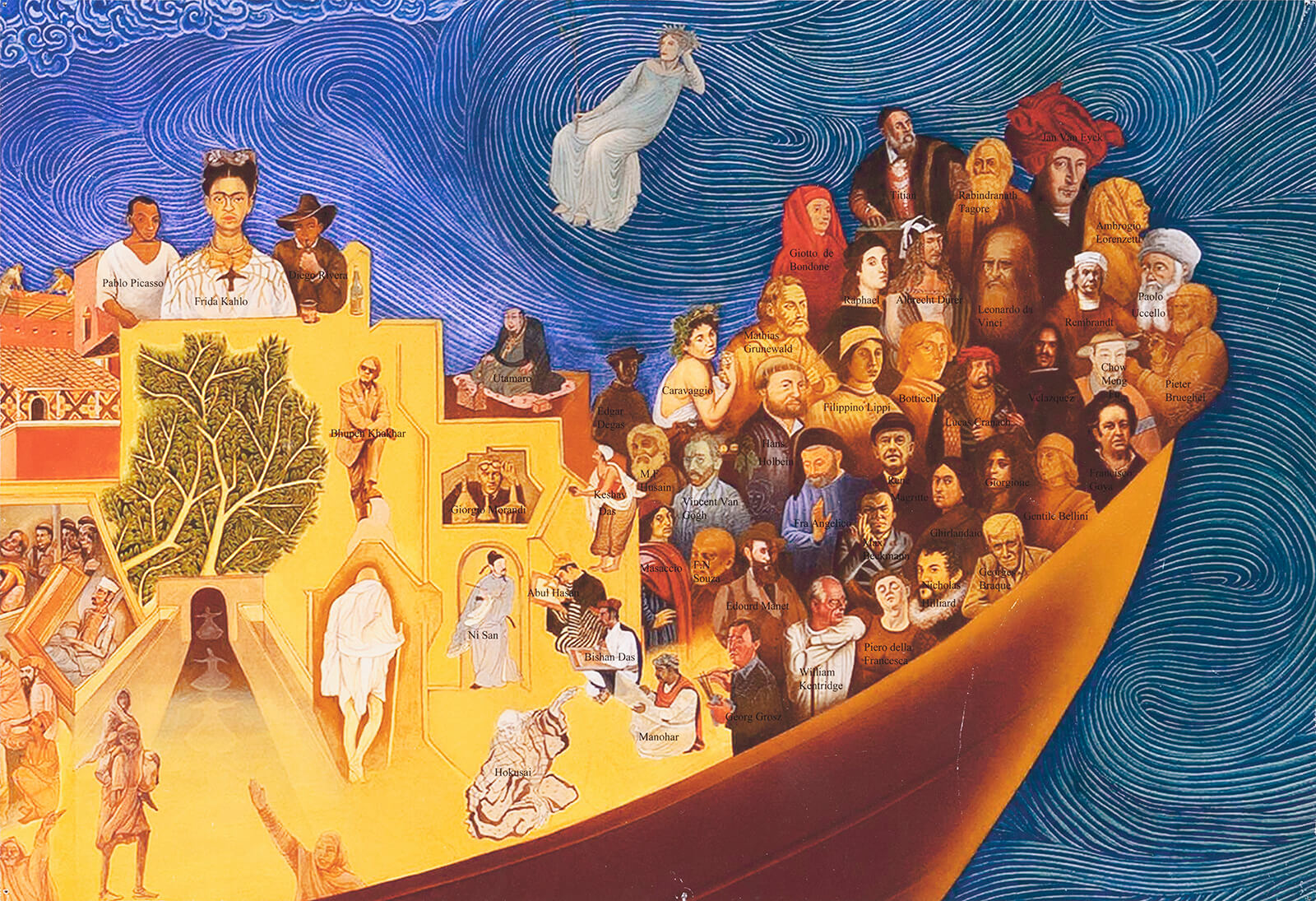 In his recent show at Mumbai’s Chemould Prescott Road gallery, Kaarawaan and Other Works, artist, poet and art historian Gulam Mohammed Sheikh rustled up an impressive ship’s manifest. Frida Kahlo was present, flanked by Pablo Picasso and Diego Rivera. Below them, Bhupen Khakhar lingered, gun in hand. Huddled together in the prow of the ship, Caravaggio, Vincent Van Gogh and FN Souza rubbed shoulders, their elbows nudging the sides of other painting greats. The ship they all journey in is at the centre of Sheikh’s Kaarawaan, a gigantic work painted over five years, from 2019 to 2023. Kaarawaan takes up an entire wall; it is a Noah’s Ark of artists over the centuries, literary and poetic references and scenes from mythology—seamlessly cutting through vast tracts of space and time—at the tip of the prow, the 14th century Italian painter Ambrogio Lorenzetti seems to look out at the Biblical prophet Jonah, who is about to be swallowed by a whale. The art exhibition was on view from April 5 - June 1, 2024.