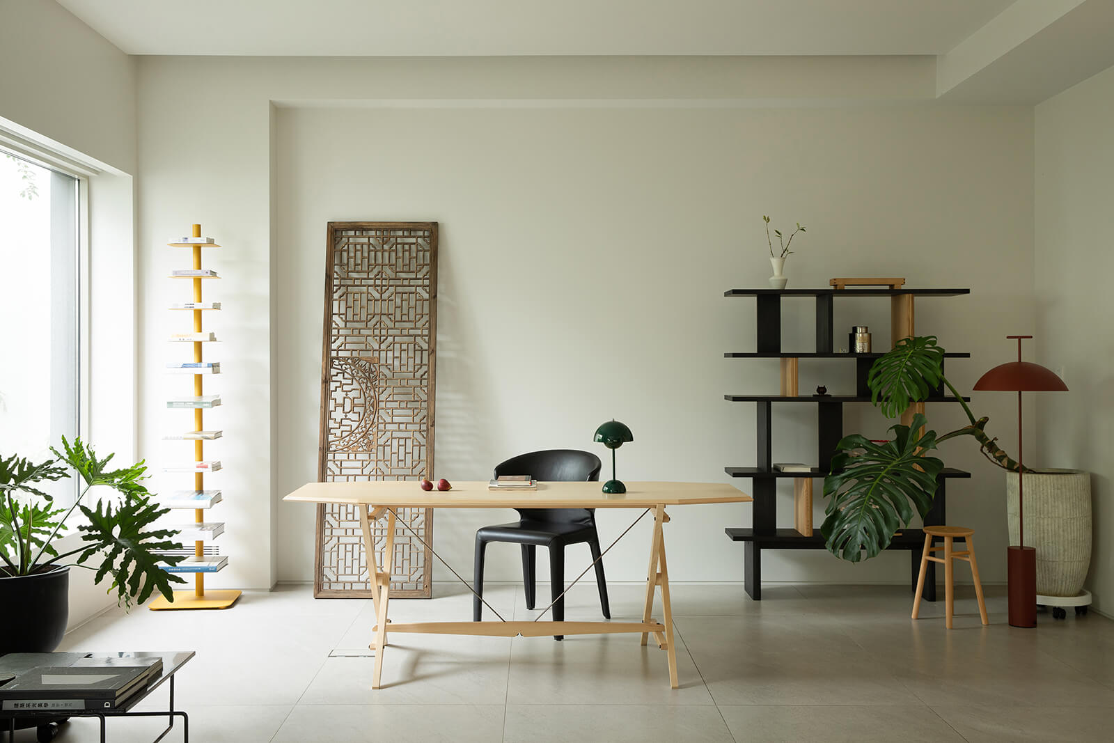 The name Qi Yuan is derived from the Ming Dynasty’s Compendium of Materia Medica (1596). In the literary classic, the character ‘䒻’ refers to a type of herbal medicine, while the word ‘屺’ originally described a barren mountain. ‘Qi’in the name, hence, represents Yuanliang’s desire to construct a symbolic mountain forest within an urban landscape. A short walk away from Suzhou’s renowned Jiangnan-style gardens, including the Lion Grove and Humble Administrator’s Garden, Qi Yuan work-live space appears as a contemporary reinterpretation of the historic landscapes it draws inspiration from. “The greatest influence Jiangnan has had on me is a heightened sense of awareness. I believe my design process is guided by this state of mindfulness—a way of thinking driven by perception,” relays the designer who operates under the name Yuan Liang Design for his architectural and residential projects.